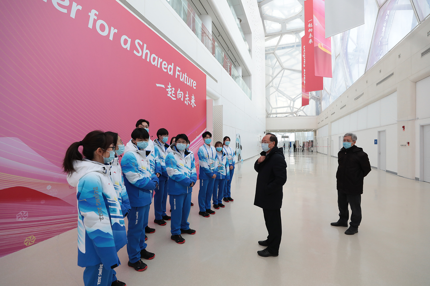 2022新年伊始,北京冬奧會籌備進入了“壓線沖刺”階段。1月3日,距北京2022冬奧會開幕式倒計時30天之際,市委常委、組織部部長、人力資源與志愿者工作組組長孫梅君來到國家游泳中心親切看望志愿者骨干。北京市委組織部主持日常工作副部長王建中北京冬奧組委志愿者部部長滕盛萍 ,副部長張秀峰、張麗娜團市委書記李軍會、副書記李健北京工商大學黨委書記黃先開、副書記李中奇北京大學黨委副書記、副校長、醫學部黨委書記陳寶劍國家游泳中心場館運行團隊主任張杰學校冬奧保障專班成員單位負責人一同參加慰問。