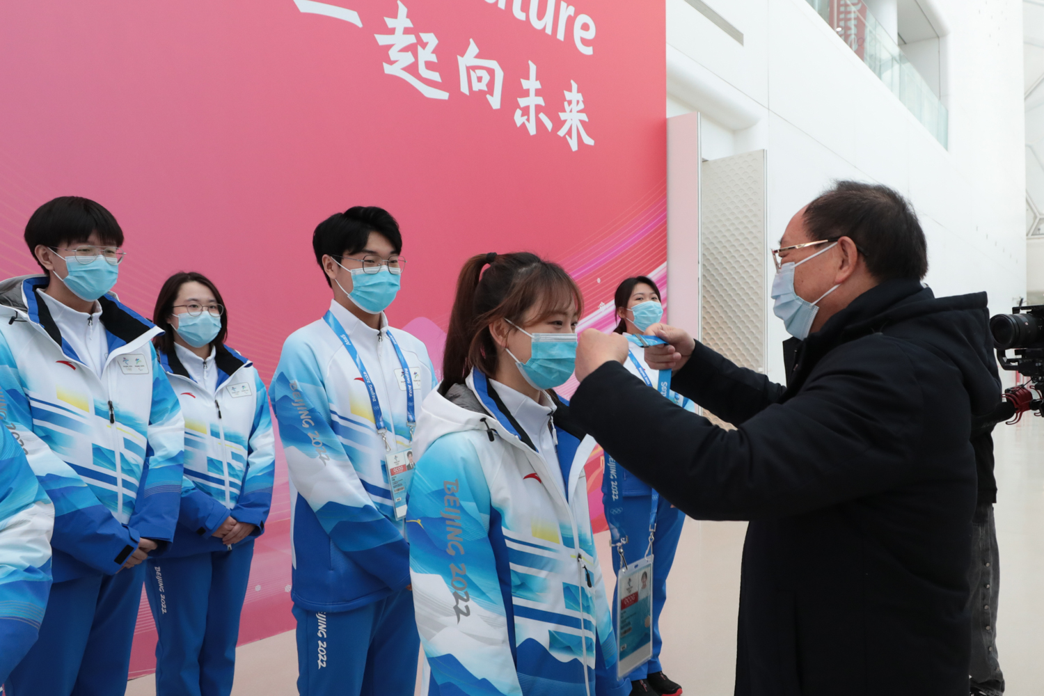 黨委副書記李中奇向志愿者贈送了暖心物資,詳細了解了志愿者們的衣、食、住、行等方面保障情況,李中奇副書記勉勵志愿者要體味校徽中三品中的深刻涵義,以優質的服務水平和昂揚的面貌踐行志愿精神;在工作過程中不斷提升綜合素質,聽從指揮,甘于奉獻,掌握工作規律,團結協作,用最完美的服務、最精彩的表現代表中國溫暖世界;同時希望我校志愿者可以經受重重考驗,圓滿完成志愿服務任務,并及時向學校反饋工作情況,反映保障需求,學校永遠是冬奧志愿者堅強的后盾!