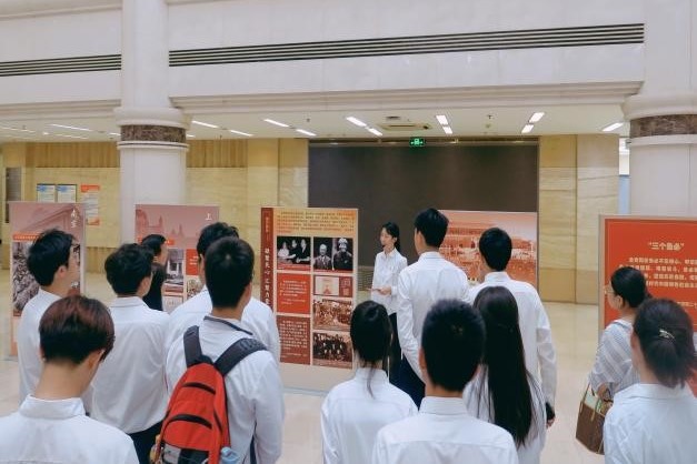 入團儀式后,全體師生前往圖書館參觀“‘京’彩文化 青春綻放”行動計劃紅色行專題,“永葆青春活力——香山時期中國共產(chǎn)黨自我革命實踐”黨紀學習教育專題展覽。校團委“青春宣講團”成員董奕悅、韋懿珈、許睿寧、楊燦、杜佳依為現(xiàn)場師生進行了詳細講解。