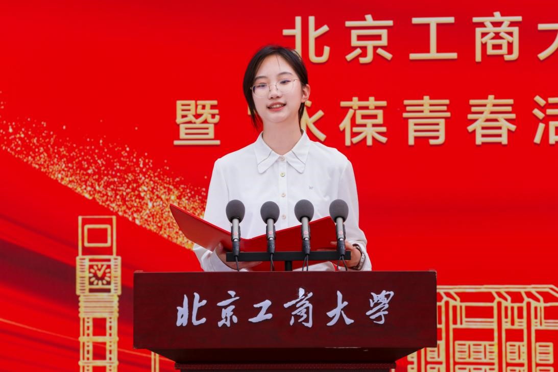 目前,學校共有12648名共青團團員,全校團青比74%。按照共青團中央2023年12月發(fā)布的《中國共產(chǎn)主義青年團入團儀式儀程規(guī)范(試行)》,本次入團儀式共有“奏唱國歌”“宣布新團員名單”“頒發(fā)禮”“宣誓禮”“新團員代表發(fā)言”“優(yōu)秀團員代表發(fā)言”“向新團員提出希望和要求”“奏唱團歌”八項儀程。