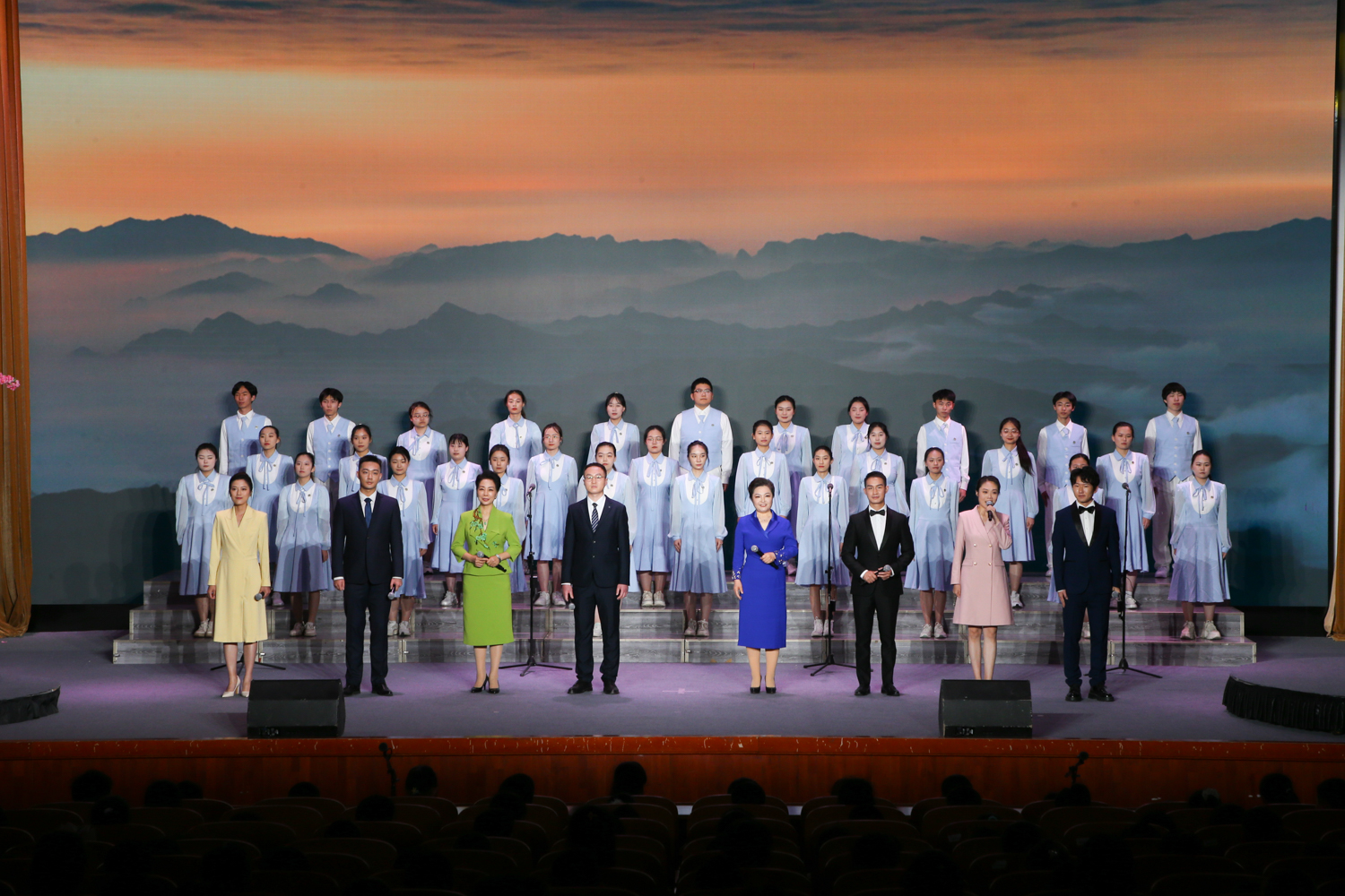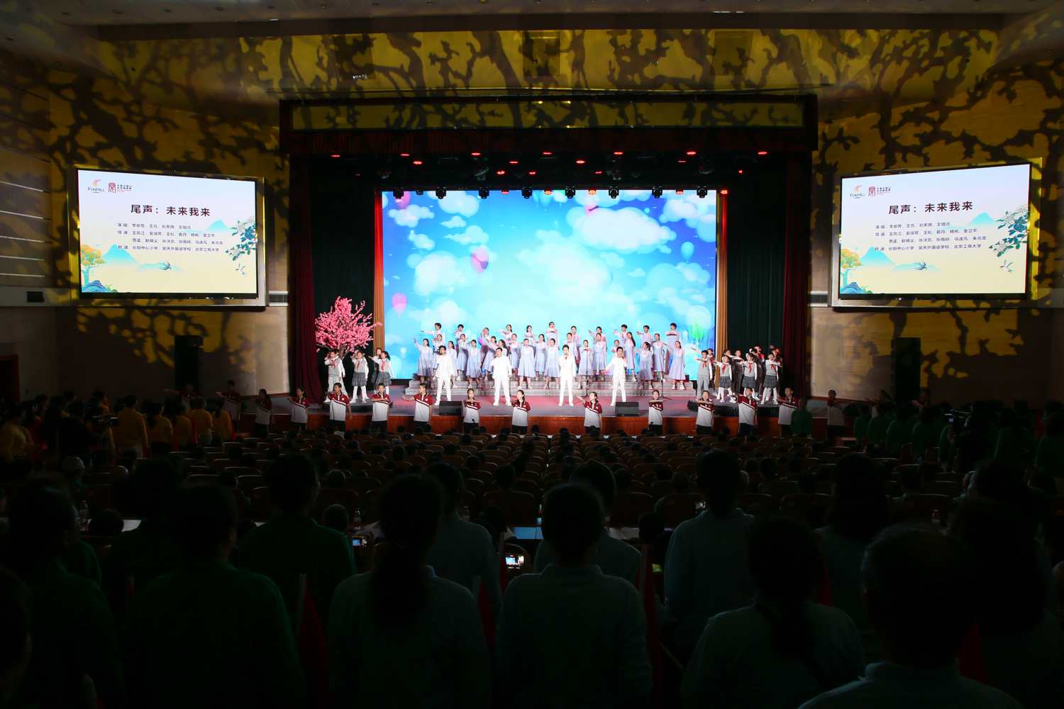 “最美是人間四月的天,一江春水綠如藍”伴隨著優美的童聲《上春山》,校地詩歌誦讀會正式開啟。小學生們用誦讀的形式展現了春天的草木蔥蘢,純真的聲音里充滿了迎春的喜悅,顯示了少年們的蓬勃風采。校地詩歌誦讀會共分為《序篇》《東風勁吹》《萬花競放》《春光無限》《尾聲》五部分,來自我校和房山區的各界誦讀愛好者組成了千人誦讀團,他們中有朝氣蓬勃的中小學生,有青春洋溢的大學生,更有精神矍鑠的老年人,他們用或稚嫩、或鏗鏘、或輕柔的聲音誦讀經典,抒發心中萬千熱愛。誦讀團成員采用詩歌朗誦、情景表演和臺上臺下群誦相結合的表演方式,傾情演繹各行各業人民群眾在新征程上的奮斗故事,展現了新時代人民生活的勃勃生機,彰顯了“六大房山”建設成果。在尾聲《未來我來》中,青少年舉臂吶喊:未來我來!展現了青年一代自信自強,勢不可擋的昂揚朝氣。全場觀眾或舉旗、或高呼,大會在熱烈的氛圍中落下帷幕。