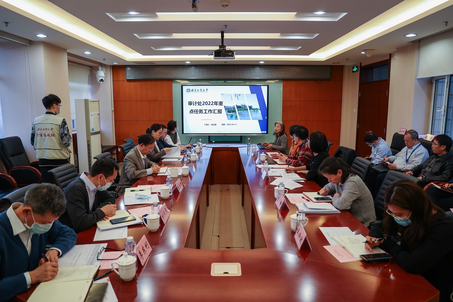 黃先開指出,各級領導干部要當好“施工隊長”,明確責任、分解任務、推動落實,以高度的責任感和事業心,團結帶領全校師生員工高質量完成學校年度十大重點工作任務。一是要堅持事業為上。學校領導班子成員要切實擔負起主體責任,厘清分管部門及聯系單位任務分工,提出目標和要求,層層傳導壓力,狠抓工作落實。各分管部門及聯系單位要認真履職盡責,按照“清單化管理,項目化推進,掛圖式作戰”的要求,鉚足干勁,保持韌勁,積極主動創造性地開展工作,逐條逐項、不折不扣地抓好落實。二是要堅持問題導向。學校正處在發展關鍵時期,要聚焦當前工作中特別是干部隊伍建設上存在的問題,摸清癥結、查找原因,健全監督考核評價機制,壓緊壓實主體責任,多措并舉,多管齊下,切實推動干部轉作風、樹新風、作表率、抓落實,在干中學、在學中干,不斷提升工作能力和治理水平。三是要堅持系統觀念。要強化系統思維,形成閉環管理,杜絕形式主義。學校黨委將每季度末聽取十大重點工作任務落實進度匯報,年底形成總結報告,并以此作為考核評價各級領導干部的重要依據,作為選拔培養年輕干部的有力平臺。黃先開強調,全校上下要齊心協力、通力協作,以重點任務落實為契機,推動學校整體工作邁上新臺階、取得新突破,為推動學校“雙一流”建設和學校高水平研究型大學建設奠定堅實基礎,為首都經濟社會發展作出新的更大貢獻!