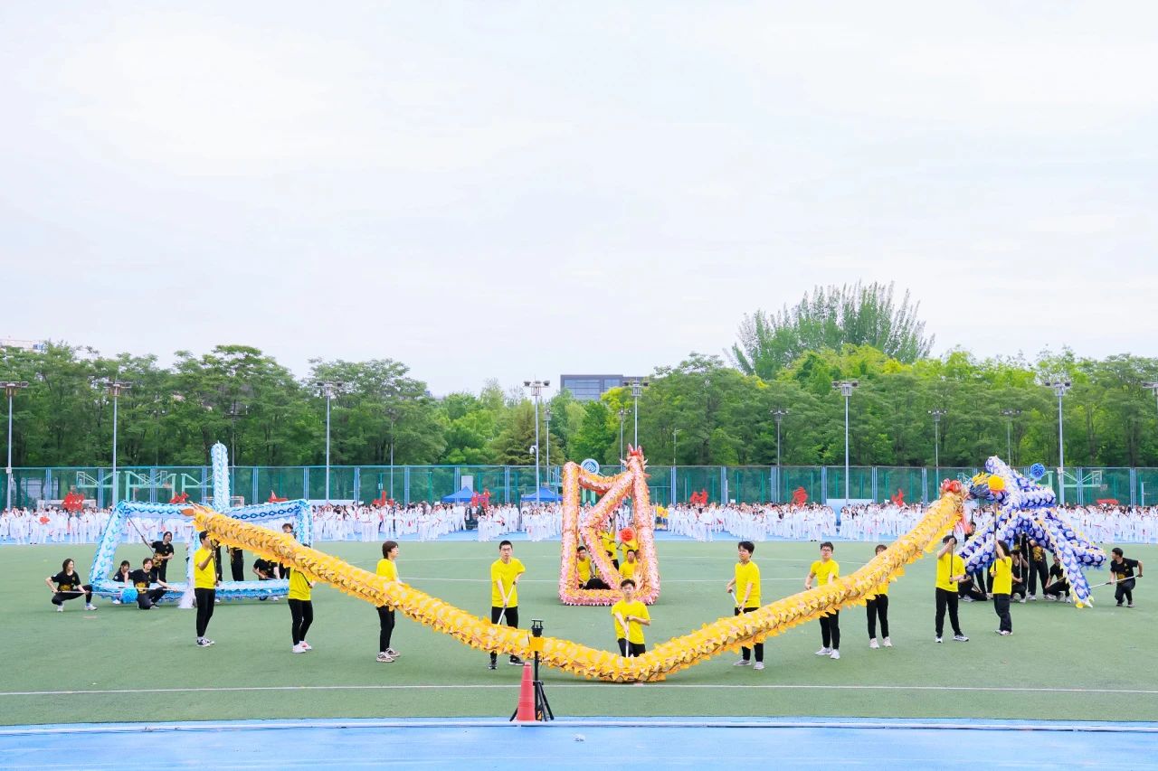表演開場,龍舞飛揚!校舞龍隊入場。手握游龍,前后照應(yīng),配合默契。隨著音樂節(jié)奏,龍身盤旋舞動,時而出海,時而潛淵,聲勢浩大,一舉點燃賽場熱烈的氛圍。