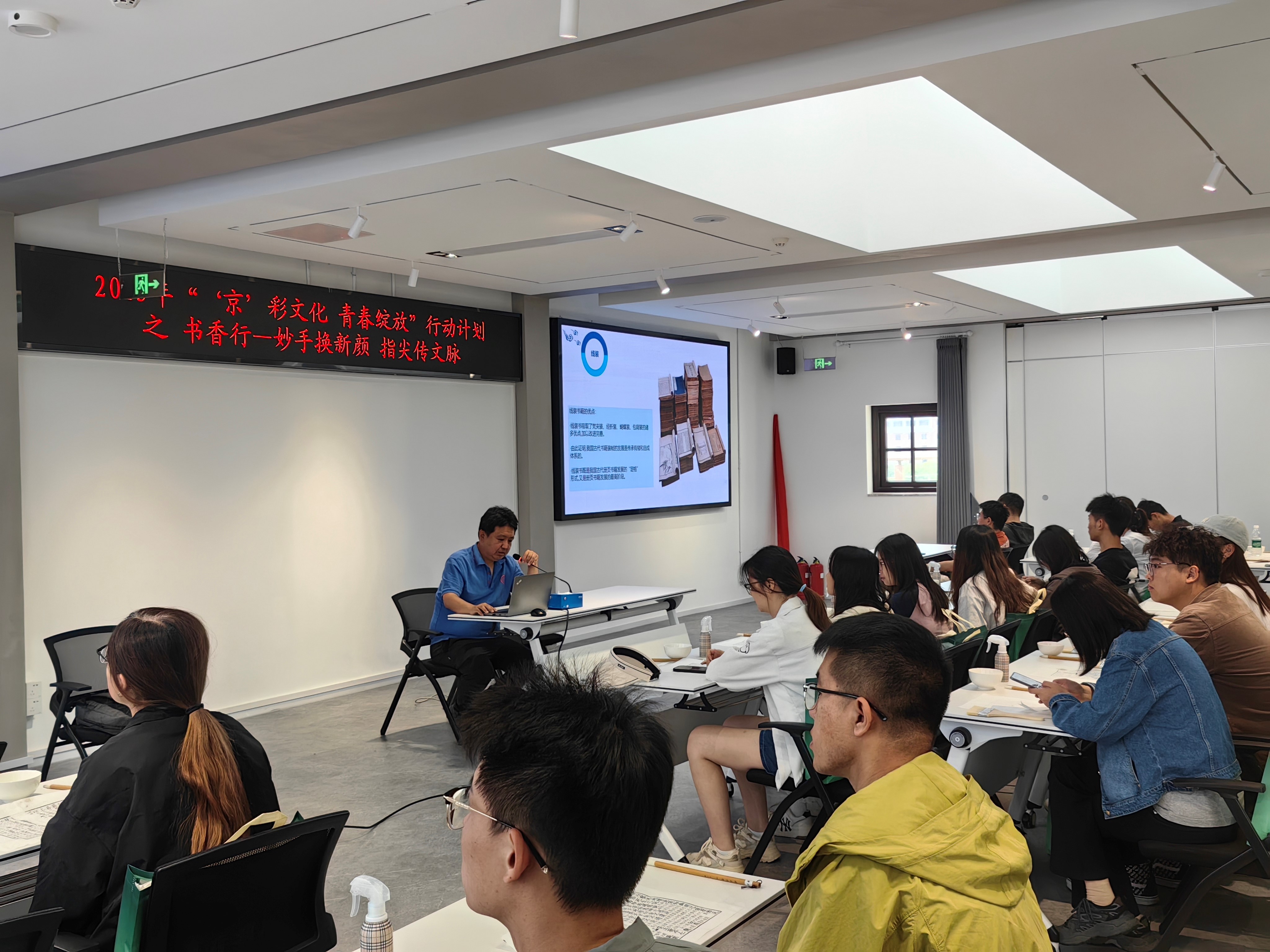 書香卷意間,盡顯文化發(fā)展之重。“古籍修復(fù)技藝2008年入選國家級非物質(zhì)文化遺產(chǎn)代表性項目名錄,它就像為古籍做一場‘微型手術(shù)’,每個細節(jié)都不容疏忽。”古籍修復(fù)資深從業(yè)專家楊弋為在場師生詳細闡釋了古籍修復(fù)技藝所承載的千年文脈,帶領(lǐng)大家學(xué)習(xí)修復(fù)和裝幀的基本流程。經(jīng)院師生們在漿水的黏合間感受文化傳承的韌性,在線裝的經(jīng)緯中領(lǐng)悟匠心延續(xù)的溫度。