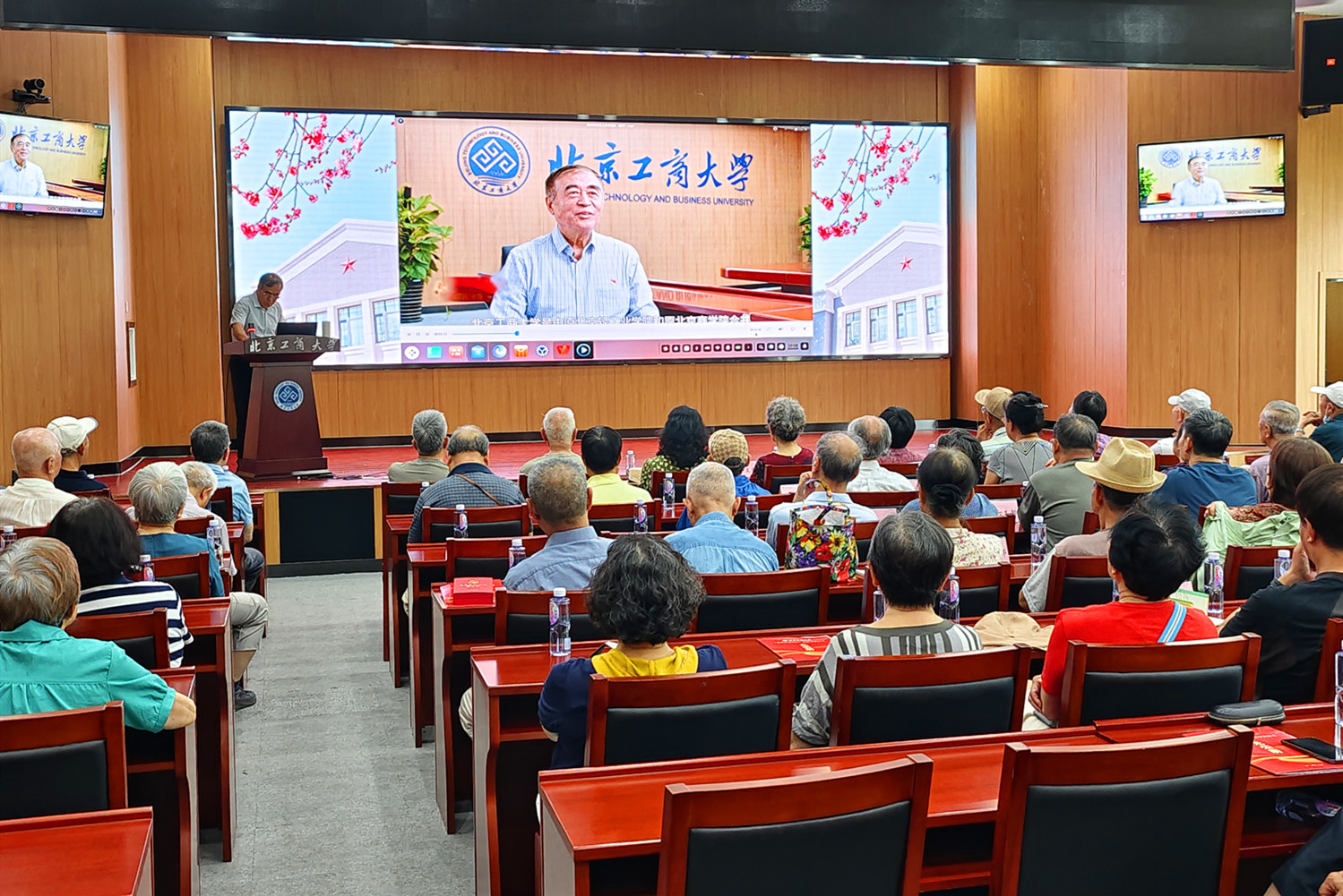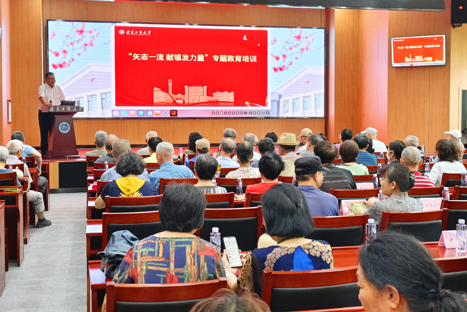 按照《北京工商大學師生黨員基本培訓全覆蓋工作實施方案》部署要求,6月28日上午,離退休黨委在阜成路校區舉辦“矢志一流 獻銀發力量”專題教育培訓,邀請學校關工委副主任潘伯洲以“矢志一流 獻銀發力量”為題作專題報告。離退休黨委各黨支部黨員代表90余人參會,其他老黨員通過騰訊會議在線參加培訓。會議由離退休工作處處長樊江濤主持。