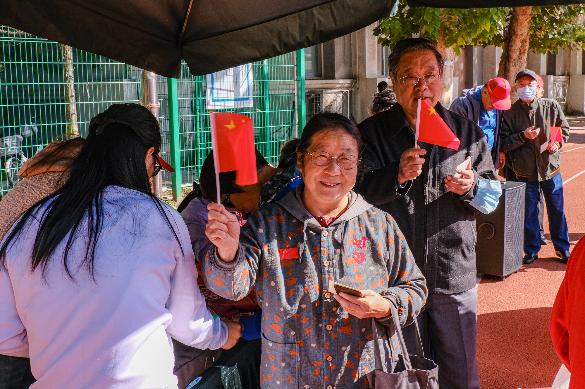 活動當天,陽光明媚,學校操場上人聲鼎沸,彩旗飄揚。上午10時整,隨著一聲整齊的號令,集體健步走活動正式拉開帷幕。老同志們貼著統一的國慶圖標,臉上滿是自豪與喜悅,他們隨著激昂的紅歌旋律,手舉紅旗,邁著堅定的步伐,沿著操場緩緩前行,每一步都踏出了對過往歲月的深情,每次擺動都舞出了對新時代的美好憧憬,他們用這份獨有的方式來表達自己對祖國的深情祝福與無限熱愛。