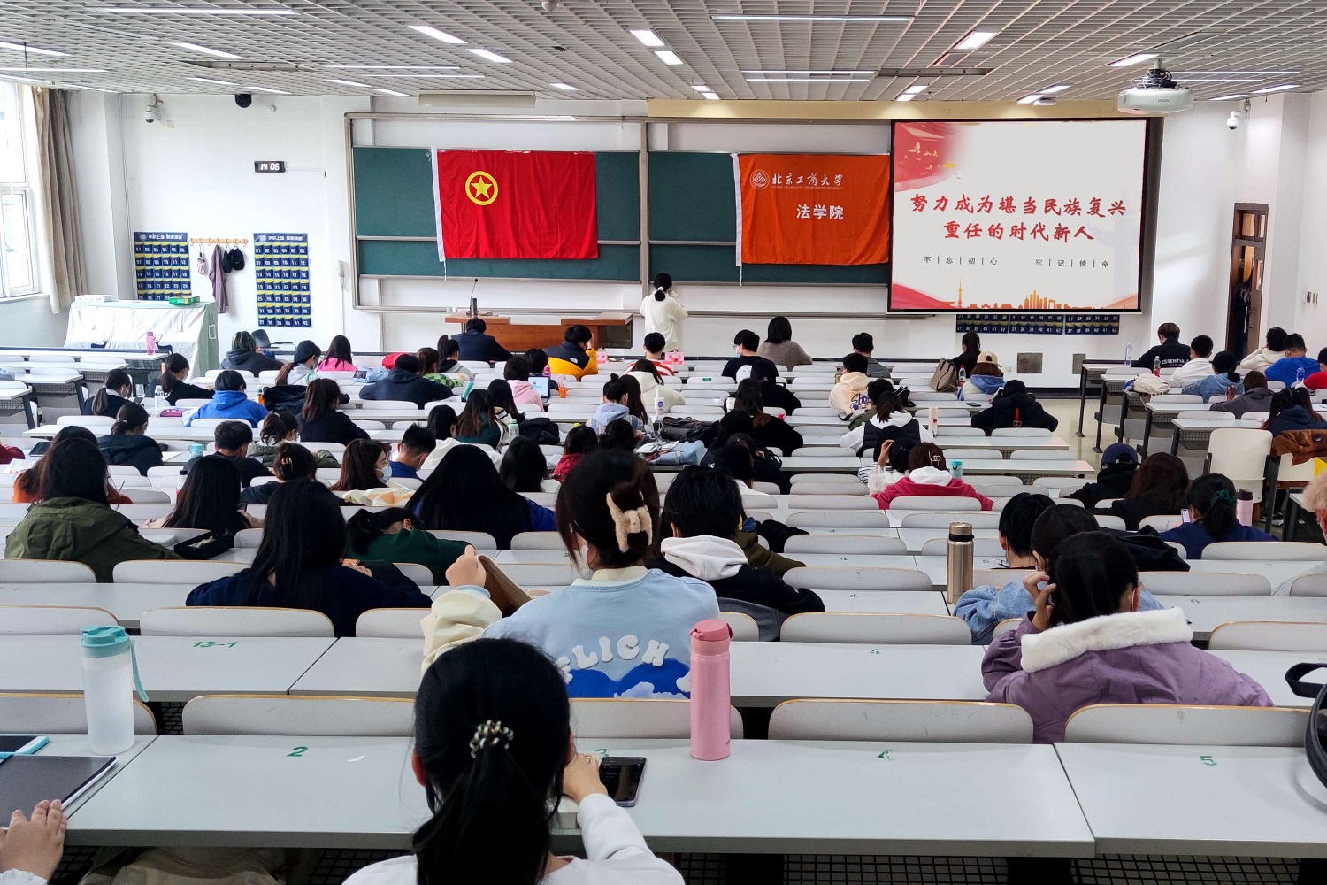 10月28日,法學院在良鄉主校區為同學們開展了以“努力成為堪當民族復興重任的時代新人”為主題的大學生黨風廉政教育講座,旨在讓同學們深入學習并弘揚中國共產黨廉潔自律的優秀傳統,爭做一名不忘初心、為他人服務的優秀學生干部。法學院黨委副書記劉晶參加活動,學院19-21級黨團班主要學生干部聆聽講座。講座由法學院教師周磊開講。