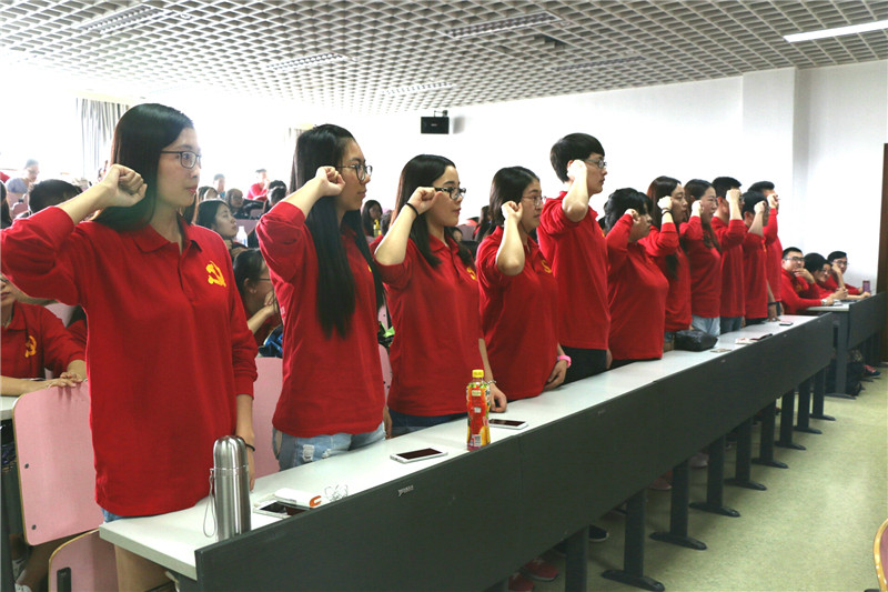 會上,學生黨員們觀看了電影《建黨偉業》的精彩片段,重溫了中國共產黨建黨那段崢嶸歲月,感受革命先輩崇高的信仰,以及他們對共產主義事業崇高的信仰和不懈的追求。在學生黨支部書記的帶領下,38名轉正黨員面對黨旗,舉起右拳莊嚴宣誓。