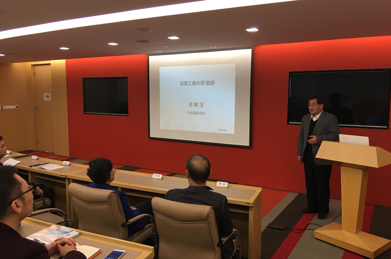 張德玉副書記致辭,他代表學校感謝康師傅控股的邀請,高度評價了康師傅對教育、人才的關注,希望通過這次簡短的參訪加深對康師傅控股的了解,進一步探討有關于產品研發、科技研究、學術交流等方面,找尋提升空間,有效結合學校的扎實基礎與企業的發展規劃,共同努力,深度加強合作。