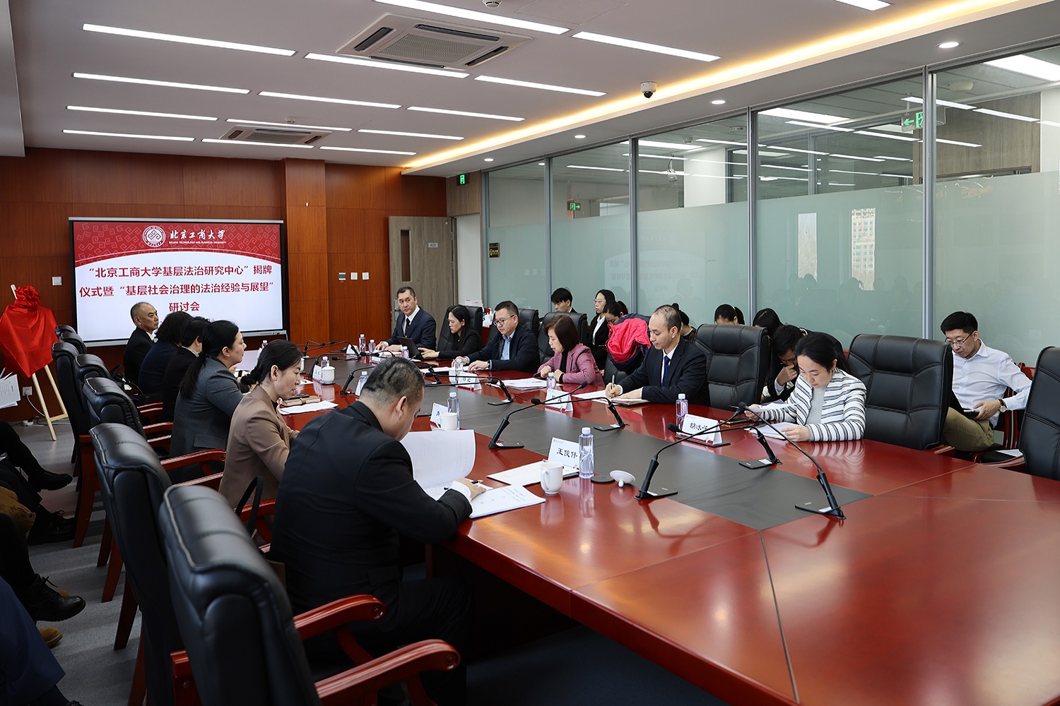 12月25日,北京工商大學基層法治研究中心揭牌儀式暨“基層社會治理的法治經驗與展望”研討會在學校良鄉校區成功舉辦。北京工商大學黨委常委、紀委書記、二級高級監察官楊紅,房山區人民法院院長齊瑩和房山區司法局局長王媛出席會議并致辭。揭牌儀式由北京工商大學法學院黨委書記胥陽主持。