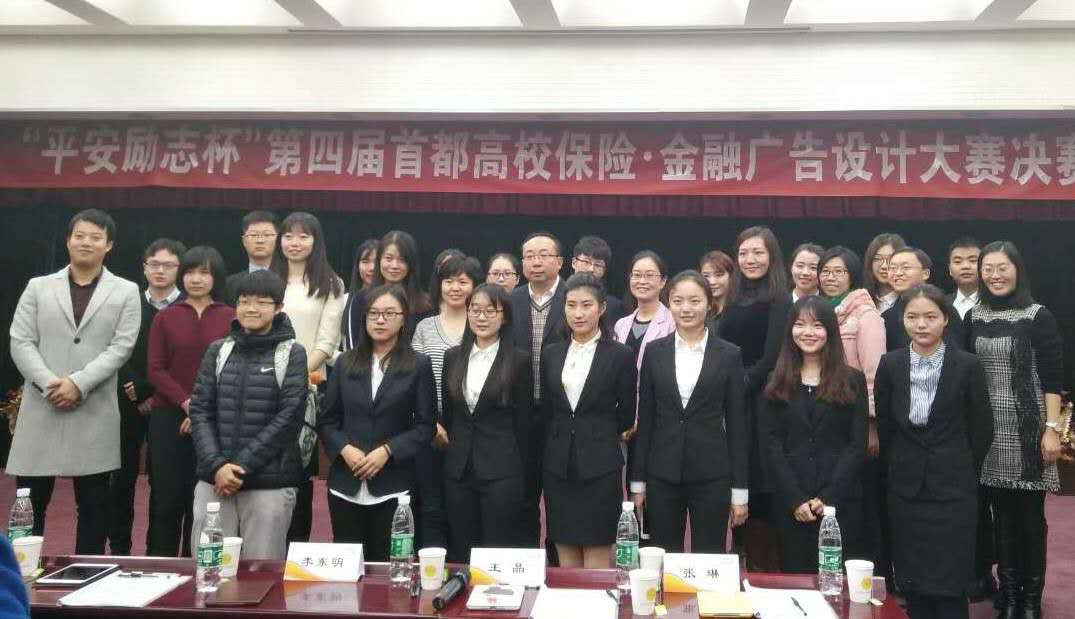 12月3日,“平安勵志杯”第四屆首都高校保險·金融廣告設計大賽總決賽在對外經濟貿易大學舉辦。。出席決賽的評委有中國保險報業股份有限公司品牌部負責人李東明、中國保險學會創新部主任助理王晶、首都經濟貿易大學廣告系教授李佳蔚、平安產險北京分公司品牌部郭曉雨、永誠保險公司車險運營部主管張琳。藝傳學院學生作品入圍本次大賽決賽,學院團總支書記徐亮帶領學習實踐部長郭菊一行4人作為特邀嘉賓出席本次大賽決賽。