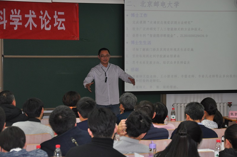本次論壇邀請了優秀校友、國家獎學金獲得者、研究生代表等演講、分享交流。紀士浩以《一個工程師平凡的經歷》為題,結合自己從事軟件工程師的豐富工作經歷、生活經驗,為在座學生提出了諸多建議,他尤其指出選擇一個行業、選擇一家單位的重要性。畢業校友畢松通過自己碩士、博士、高校任教的經歷和體會,以《十年一小步》為題介紹了自己的科研方向及科研成果,從類腦計算、智能群體移動機器人研究平臺等科技前沿知識探索研究,到率領學生參加諸多大賽經歷,分享了很有啟發的體會和經驗,極大的豐富了與會同學們的視野。優秀研究生代表聶春雪、王曉冰、王鋮、陳肖蒙、王睿分別從不同的視角進行了精彩的學術交流分享,介紹了各自在研究生階段的科研生活感悟,展開了關于科研的構思與鉆研、論文的寫作、學術水平與學術道德等問題的討論與思考,得到了在場學生的強烈共鳴與認可。導師代表于重重教授結合自身指導研究生、完成科研的經歷,與同學們交流了科研定位與同學之間交流的重要性,不同研究方向之間交叉結合可能帶來的創造性的思考與成果。