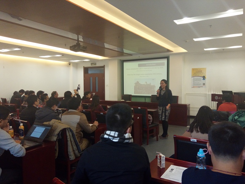 Claudia Zuniga首先由一個(gè)“拉繩子”視頻開(kāi)始,向在場(chǎng)的聽(tīng)眾形象的解釋了城市之間的聯(lián)系。之后她通過(guò)與聽(tīng)眾的一系列互動(dòng)啟發(fā)聽(tīng)眾對(duì)城市計(jì)算中的數(shù)據(jù)與可視化挑戰(zhàn)的思考:發(fā)展中國(guó)家,比如我們身處的中國(guó),正處在城市化進(jìn)程的重要階段,許多城市化帶來(lái)的問(wèn)題諸如資源消耗、交通擁堵等都擺在我們面前,如何通過(guò)數(shù)據(jù)分析與可視化解決這些問(wèn)題。隨后講座重點(diǎn)介紹了Claudia Zuniga和她的團(tuán)隊(duì)在哥倫比亞所進(jìn)行的多個(gè)智能城市的研究項(xiàng)目,包括了項(xiàng)目的研究背景,參與研究的人群,數(shù)據(jù)收集與數(shù)據(jù)分析的情況等等。同時(shí)還分析了在這幾個(gè)項(xiàng)目中所遇到的數(shù)據(jù)分析與可視化的挑戰(zhàn)和解決方式。