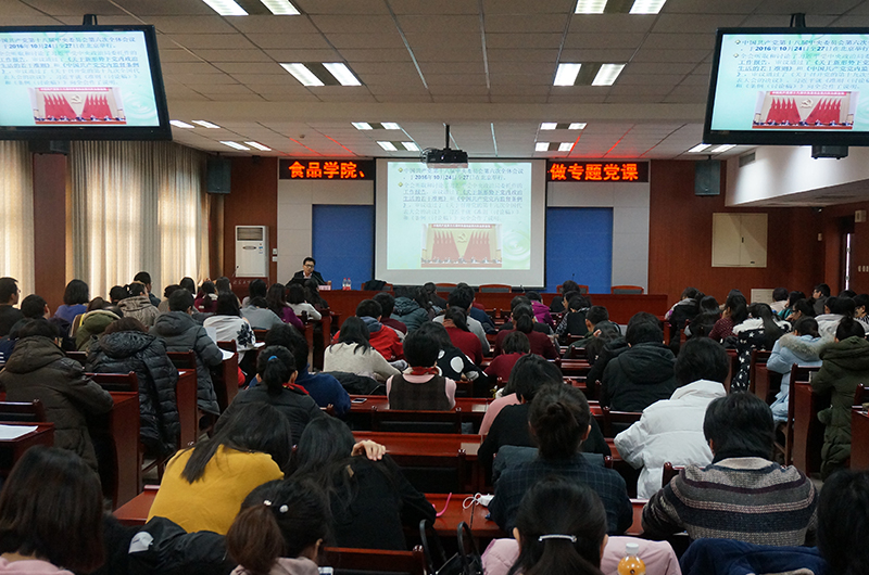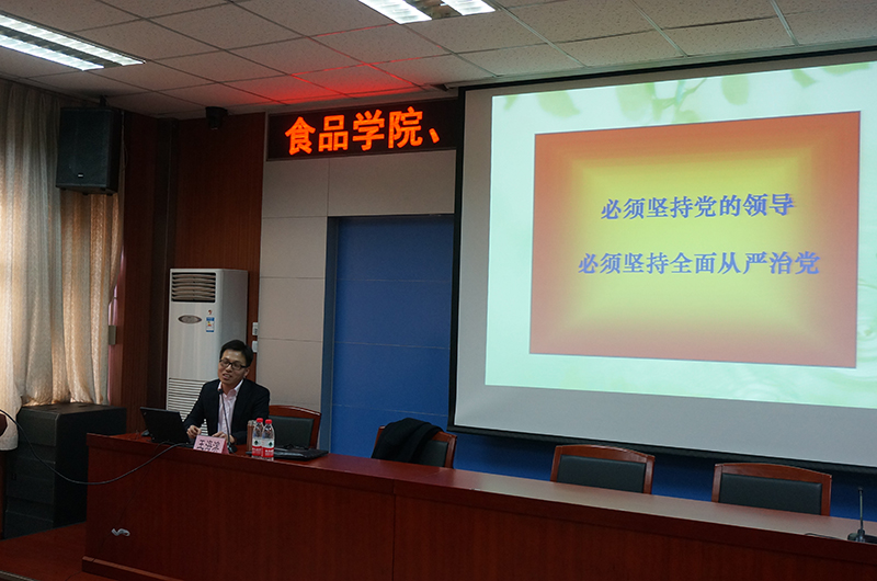 為深入學習貫徹黨的十八屆六中全會精神,扎實推進“兩學一做”學習教育。12月28日,中共中央黨校王海濱教授受邀為食品學院和馬克思主義學院全體教工黨員及部分學生黨員作題為“理解和貫徹十八屆六中全會精神”的專題黨課。黨課由食品學院黨委書記何猛主持。