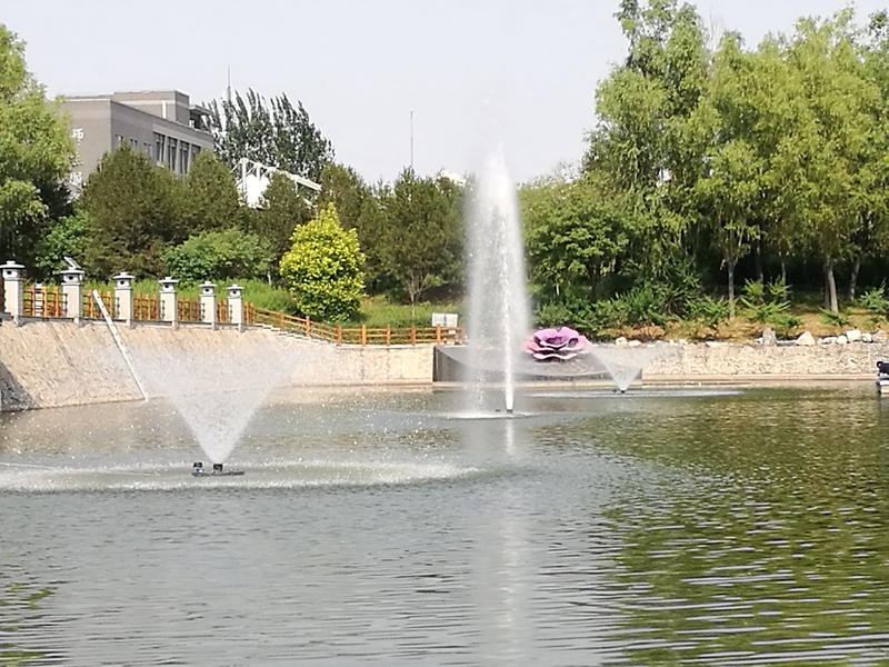 為此,學校后勤基建處經多方實地考察調研,決定給人工湖安裝上“人工心臟”和“呼吸通道”,在湖中心安裝三臺浮水噴泉式曝氣機,對水體進行循環強化復氧處理,提高水體的自凈能力,抑制湖中有害生物的生長,保證校區內生態系統平衡。三臺曝氣機還會定時啟動噴泉,提高湖水的觀賞效果,使湖水、噴泉與周圍的綠化景觀交相輝映,為學校廣大師生營造一個綠樹掩映、清新優雅的校園環境。