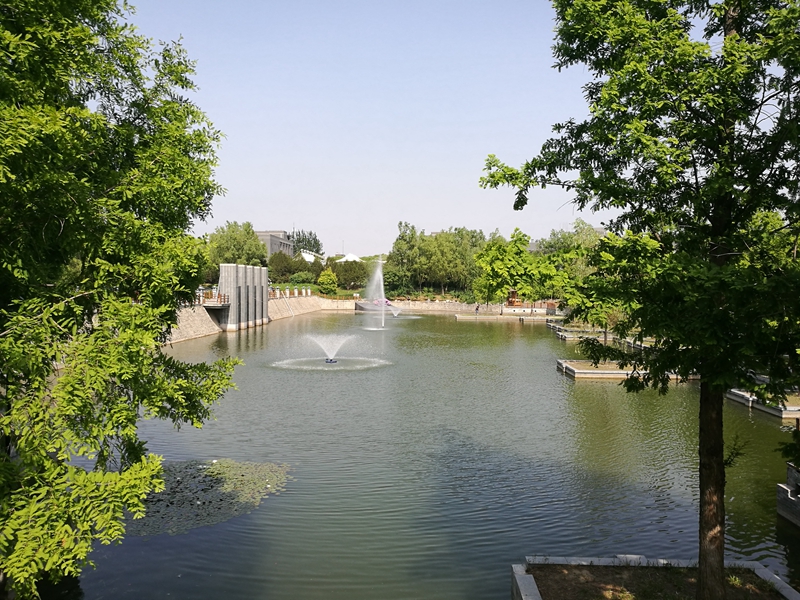 人工湖位于學校良鄉校區求知廣場北側,是學校景觀之一。近幾年由于地表徑流污染物的流入,該湖出現了水流不暢、渾濁、缺氧等現象,破壞了生態系統,影響了校園環境的整潔美觀。