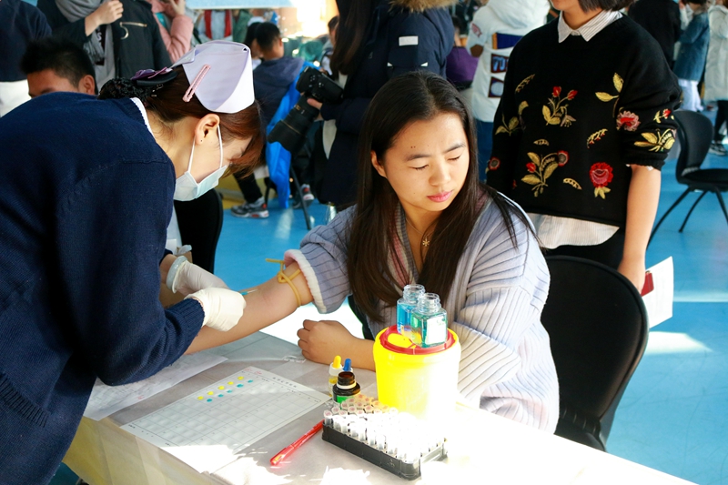 樂于奉獻的暖流貫穿整個學生活動中心,吸引著更多的人參與到活動中去。熱鬧而和諧的采血現場、37℃熱血的流動、同學們或激動或自豪或平靜的臉龐,仿佛都呼應著學活大廳外宣傳海報的標語——你是“英雄”。