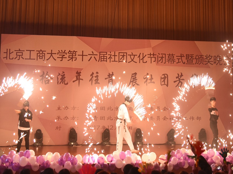 本次社團(tuán)文化節(jié)閉幕晚會共分為“流年往昔”“社團(tuán)芳華”“社彩繁花”三個篇章。在第一篇章里,漢未央傳承中華傳統(tǒng)文化美韻,一支《銅雀賦》展現(xiàn)出了古典舞的柔美;校管樂團(tuán)為大家?guī)怼毒檬尳鹎疅罚^眾掌聲不斷;GSMY街舞社的同學(xué)們活力四射,舞蹈酷炫,引爆全場。社團(tuán)工作部同學(xué)準(zhǔn)備的詩朗誦《社團(tuán)人》,道出了每一個社團(tuán)人的心聲。武術(shù)協(xié)會精彩的跆拳道表演,將現(xiàn)場氣氛推向高潮。在第二篇章里,合唱團(tuán)悠揚(yáng)的歌聲、紅十字會學(xué)生分會溫情的詩歌朗誦以及新火幻旅動漫社優(yōu)美的舞蹈,讓大家看到同學(xué)們對社團(tuán)深深的熱愛。BTBU吉他社的歌曲彈唱;粵語社的《喜歡你》和校舞蹈團(tuán)的酷炫街舞,再一次點燃全場。在第三篇章里,話劇社表演的《生活之光》成為晚會的又一個亮點,臺上演員的傾情表演,贏得了臺下陣陣喝彩。雪域鍋莊社帶來的藏族鍋莊舞,讓大家領(lǐng)略到濃郁的民族風(fēng);校園國防社和戰(zhàn)友協(xié)會聯(lián)合表演的《戎耀工商》讓大家感受到工商學(xué)子的豪邁情懷。最后,在一曲大合唱《社團(tuán)夢》的歌聲中,本次社團(tuán)文化節(jié)閉幕晚會落下了帷幕。
