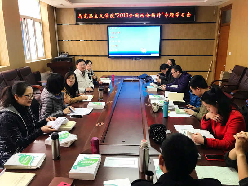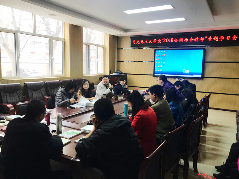為深入學習領會2018年全國兩會精神,4月4日下午,馬克思主義學院黨總支在阜成路校區(qū)組織召開“2018全國兩會精神”專題學習會。會議由馬克思主義學院院長兼黨總支書記王魯娜主持,學院全體教師黨員參加了會議。