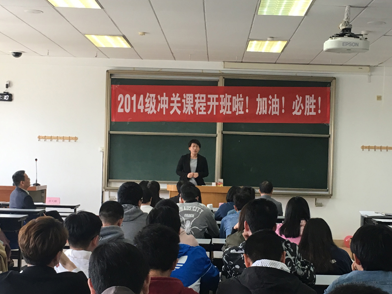 為實現學校十三五規劃的“369” 目標,助力14級學子們最后一次四級沖關成功, 我校外國語學院、學生處、教務處等多部門高度重視,全校負責學生工作的學院書記通力協作、全力以赴動員學生,經過為期一個多月的精心籌備, 4月11日,學校14級四級診斷課堂正式開班了!