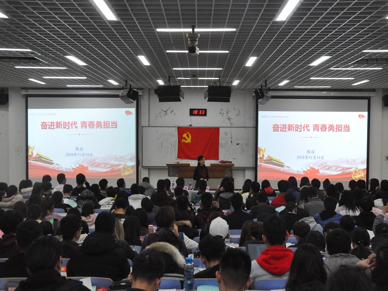 開班儀式后,陳誼為大家講授黨校第一課“奮進新時代,青春勇擔當”。在分析中共十九大報告后,她就“講奉獻,比作為,勇擔當”做出四方面講解。她提到奉獻責任與擔當是黨員的基本素養,責任擔當是由共產黨的先鋒隊性質、中國特色社會主義的復雜理論決定的,擔當精神是中國共產黨,更是中華文明的堅實本色。其次,她提到新時代對黨員的新要求:把握大勢、要有擔當以及精于實干。責任擔當不是針對領導干部的要求,而是對每名黨員的要求,黨員們要時刻謹記干部的“一二三四”標準,以身作則,勇于擔當。同時,她就如何在實踐中落實黨員的奉獻責任擔當問題進行了講解,她提到要落實責任擔當的五句話和“堅持原則,認真負責”八字方針。最后,她引用習近平總書記的“心中有信仰,腳下有力量”,倡導大家高揚理想信念旗幟,永葆共產主義黨員本色,牢記黨員身份,隨時準備戰斗。