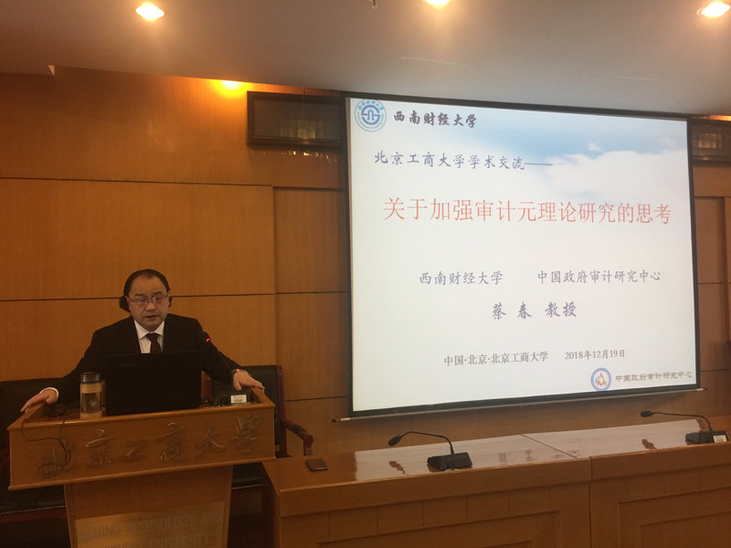 1219日,應我校商學院邀請,財政部會計名家、西南財經大學博士生導師、中國政府審計研究中心主任蔡春教授到我校作了題為《關于加強審計元理論研究的思考》的學術報告。商學院財務與會計學科全體教師,MPAcc、會計學、財務管理等專業研究生共100余人參加了本次活動。商學院黨委書記毛新述教授出席報告。商學院會計系主任張宏亮教授主持了報告會。