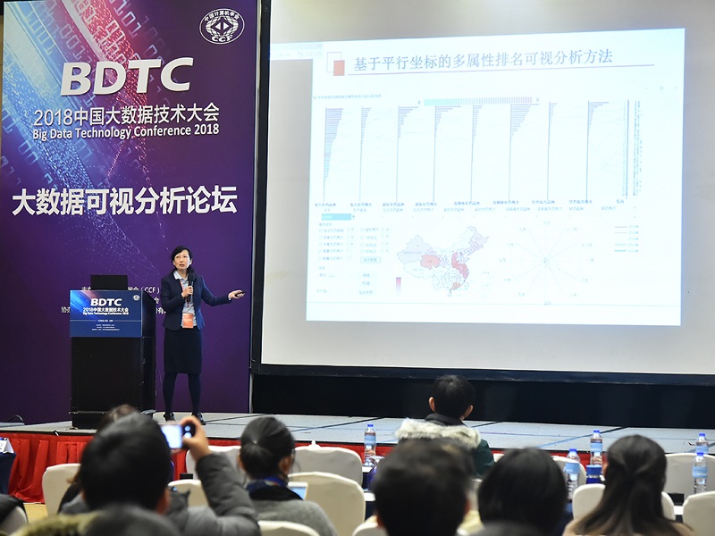 2018中國大數據技術大會-大數據可視分析論壇邀請了日本御茶水女子大學伊藤貴之教授、微軟研究院劉夢塵博士、中國科學院計算機網絡信息中心單桂華研究員、北京工商大學食品安全大數據技術北京市重點實驗室主任陳誼教授、百度ECharts孵化項目管理委員會羨轍工程師、北京大學袁曉如研究員、海云數據劉秋雯副總裁、360企業安全集團天眼事業部張卓總經理和北京永洪商智科技有限公司邵文龍高級副總裁分別作了題為“Clustering and Layout of Graphs with Attributed Nodes”、“深度學習的可視分析”、“科學可視化加速科學探索與發現”、“食品安全大數據可視分析方法研究”、“ECharts的大數據可視化實踐” 、“可視化-鏈接機器與人的橋梁” 、“能力構建AI與可視化分析應用新場景” 、“安全與可視化結合創造新的活力” 、“數據分析為客戶帶來可感知,可評估的價值”多個特邀報告。來自全國各地的100余位專家學者、政府人員、企業人士和高校師生參加了論壇,論壇由北京大學袁曉如研究員主持。