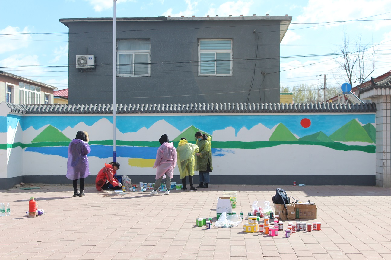 “在本次墻繪實踐活動中,我感受到了藝傳學子在新時代背景下展現出的新風貌,特別感謝同學們不畏艱苦,在大風夾雜著沙塵無情呼嘯的天氣下順利完成了墻繪。二站村文化廣場原本的白墻,在藝傳學子的妙筆下變成了綠水青山的畫卷。”周國強說道。