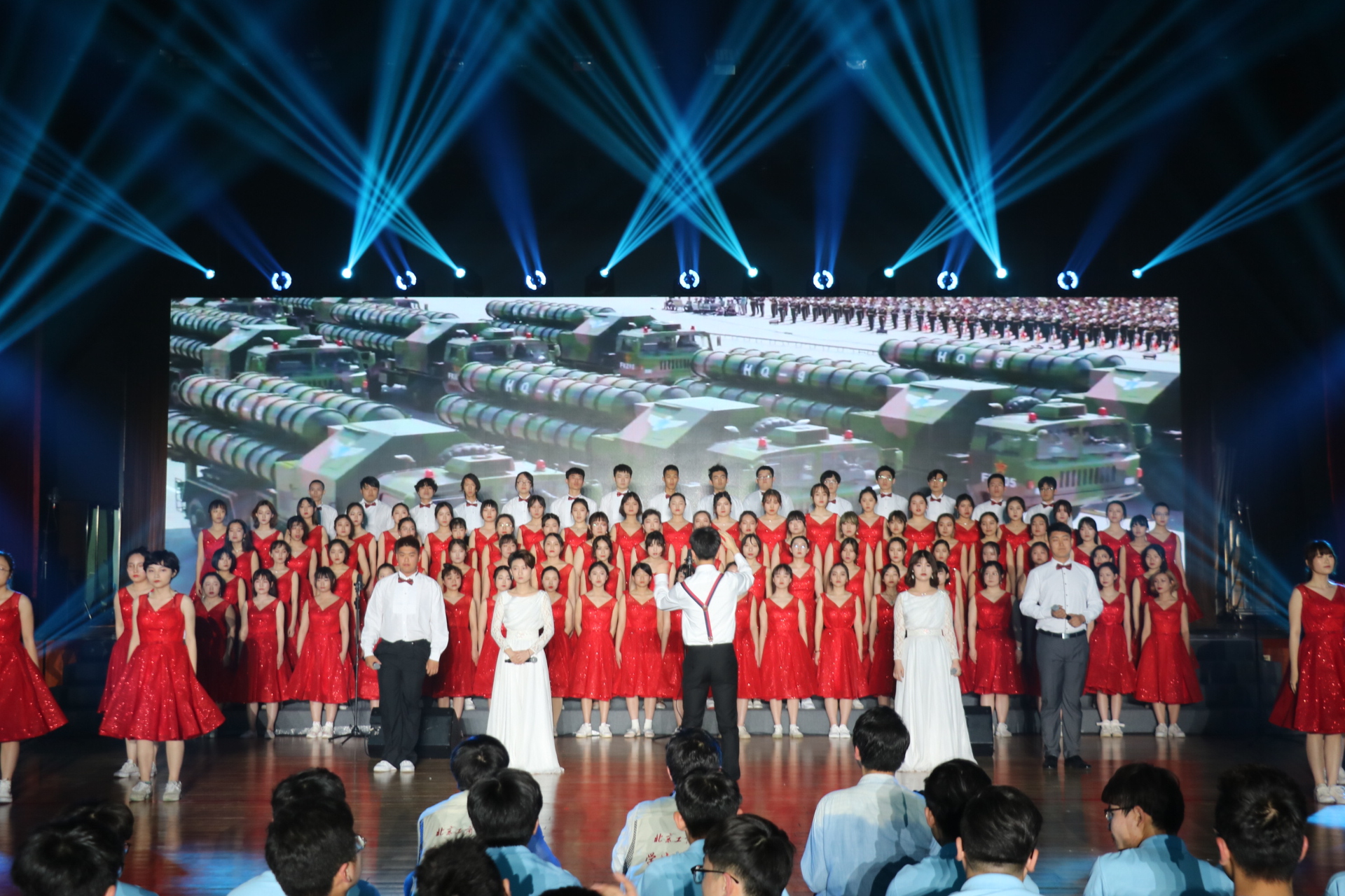 為加強愛國主義教育,激勵青年學生奮發進取,4月29日晚,藝傳學院合唱團在學校“五月的鮮花”青春歌會中,演唱的《復興的力量》《再一次出發》滿懷深情、堅定剛毅,展現了中華兒女百煉成鋼的壯志豪情,唱出了藝傳學子的青春風采。“臺上一分鐘,臺下十年功”,經過一個多月披星戴月的高密度高質量的集體和聲部練習,每一位合唱隊員昂首挺胸,雄姿英發,在舞臺上像“百靈鳥”一樣一展歌喉,和著激昂的旋律唱響放聲歌唱,歌聲清脆嘹亮,動人心弦,伴隨著音樂的節奏,舞蹈雄勁有力,與合唱完美的柔和在一起,臺下響起熱烈的掌聲,“中國夢、復興夢、青春再出發”表達了藝傳學子報效祖國的拳拳赤子之聲。