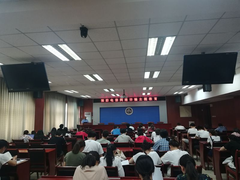 講座中,王高波警官通過“什么是電信詐騙”和“電信詐騙的危害”兩個方面,結合自身以前親身經歷的學生電信詐騙案件和我校近期發生的幾起電信網絡詐騙案例,對電信網絡詐騙的內容、方式、危害性及補救措施進行了深刻剖析。隨后,在播放的公安機關制作的“防詐騙流程小課堂”視頻中,同學們了解到各種類型的真實電信網絡詐騙案例,包括專門針對大學生的獎、助學金詐騙,網購詐騙,網絡貸款類型詐騙和網戀詐騙等等。視頻案例不僅豐富了講座的形式,還提高了同學們對電信網絡詐騙的關注、加深同學們對其危害后果的印象。最后,王警官告誡同學們電信網絡詐騙無孔不入,要提高自身防范意識,遇到緊急情況,要及時報警并多與同學、老師、長輩溝通,并呼吁同學們遠離電信網絡詐騙,享受美好校園生活。