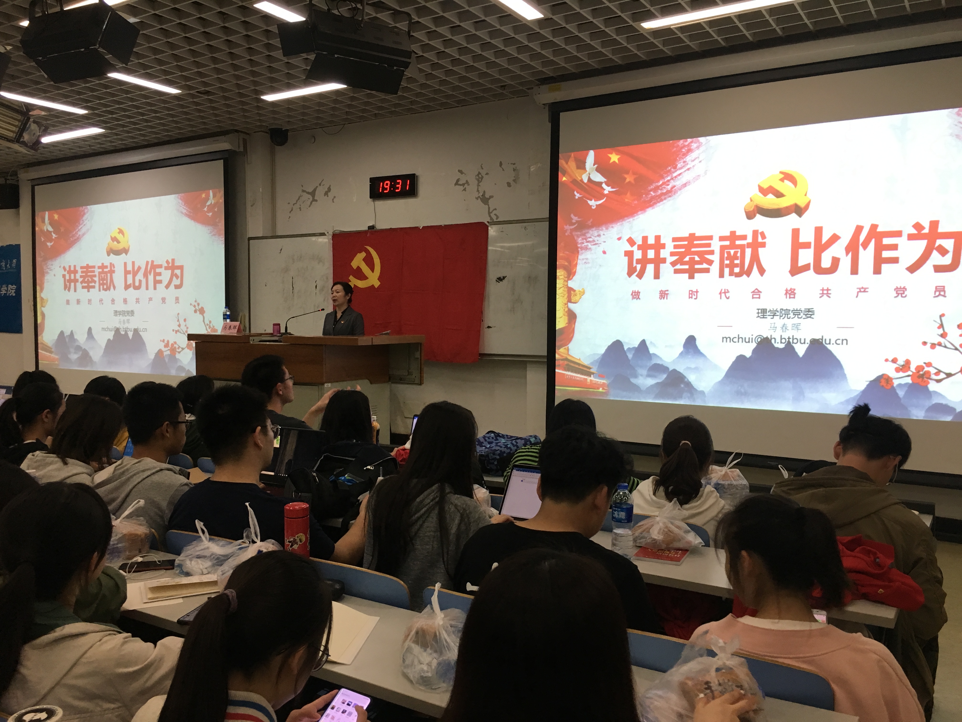 10月11日晚,理學院、數學與統計學院、經濟學院聯合分黨校入黨積極分子培訓班第二場講座在良鄉校區正式開課,理學院黨委書記馬春暉講授了題為“講奉獻,比作為,做新時代合格共產黨員”的生動一課。