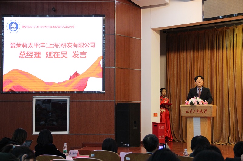 延在昊總經理、邱顯榮總經理分別代表愛茉莉太平洋(上海)研發有限公司和北京東方淼森生物科技有限公司表達了對學校、學院的感謝,希望同學們要不斷學習新知識,培育新能力,開拓新視野,更好地服務社會,服務人民,也為自己創造美好的未來。