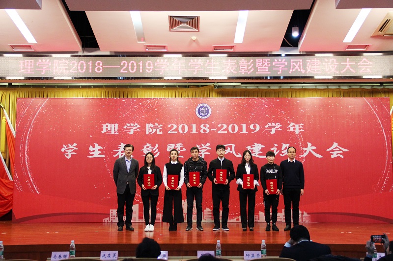 呂良宣讀了關于表彰“2018—2019學年先進集體、先進個人及優秀學生獎學金獲得者”的表彰決定。與會嘉賓先后為獲得國家級、市級、校級獎項,以及獲得愛茉莉獎學金、東方淼森獎學金的先進集體和個人頒發了榮譽證書。為加強學風建設,理學院今年增設了“東方淼森新生獎學金”,獎勵新生第一學期期中考試數學和英語成績班級排名前20%的學生。