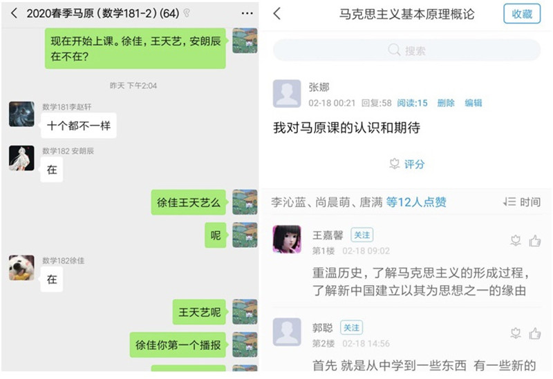 教學(xué)兩周后,老師們初步形成了“學(xué)習(xí)通+騰訊會(huì)議”的雙保險(xiǎn)教學(xué)模式。老師們根據(jù)自己的特點(diǎn)和授課實(shí)際,基本實(shí)現(xiàn)了學(xué)生簽到、網(wǎng)絡(luò)面授、作業(yè)布置、課堂討論、文獻(xiàn)閱讀、問(wèn)題解答等多種教學(xué)環(huán)節(jié)的正常運(yùn)轉(zhuǎn)。