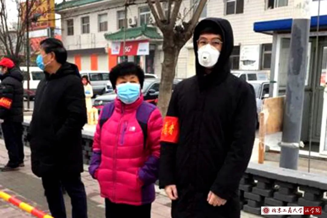 家住貴州省黔東南州的李心怡,報名參加人民醫院分診處的防控工作;來自山東省濟寧市的孫策,投身到保衛鄉鎮的第一道防線中去;家住云南大理的蘇炳豪,深入社區的街頭小巷,為抗疫工作貢獻力量。入黨積極分子法學182班琚新琪同學,聽聞北京市昌平區北七家鎮燕丹村抗疫招募志愿者,他立刻申請加入。2月7日起,他便以志愿者的身份和在村委會工作的家人一起保衛社區安全,為阻止疫情的傳播貢獻微薄之力。