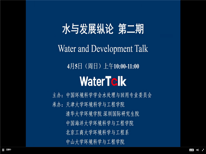 4月5日,第2期“水與發(fā)展縱論(WaterTalk)”以網(wǎng)絡(luò)會議形式舉行。生態(tài)環(huán)境部環(huán)境規(guī)劃院院長、中國工程院院士王金南院士作學(xué)術(shù)報告,清華大學(xué)環(huán)境學(xué)院教授、水處理與回用專業(yè)委員會主任胡洪營主持論壇。本次會議由中國環(huán)境科學(xué)學(xué)會水處理與回用專業(yè)委員會主辦、我校環(huán)境科學(xué)與工程系與天津大學(xué)環(huán)境科學(xué)與工程學(xué)院、清華大學(xué)環(huán)境學(xué)院和深圳國際研究生院、中國海洋大學(xué)環(huán)境科學(xué)與工程學(xué)院、中山大學(xué)環(huán)境科學(xué)與工程學(xué)院等單位聯(lián)合承辦。