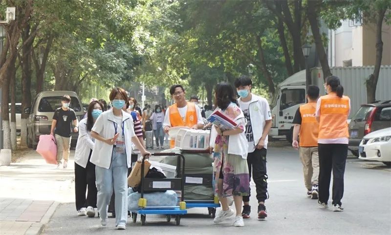 天色微亮,負責引導接待新生的全體工作人員以及班主任助理早早到達學院新生報到處,熱火朝天的布置新生報到場地,搬運整理新生材料等。今年受疫情影響,校園實行封閉式管理,家長及外來車輛不能進入校園,但學院安排身穿白色小馬甲的工作人員和志愿者熱情幫助新生辦理報到手續,搬運行李,一對一的貼心服務,每一名工作人員都面帶笑容,帶著一顆熱情而負責的心將新生一站式服務到宿舍。新生們都表示,進入大學的第一感受是興奮和期待,希望自己可以在這里學習到更多知識,結識更多朋友;同時,也對熱心幫助的工作人員表示感謝。