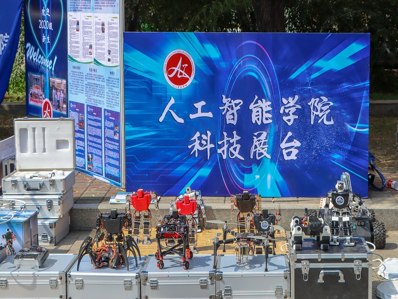 迎新工作如火如荼進行,學院安排了迎新志愿者服務隊伍,新生班主任助理、團學骨干、學生黨員、退伍學長等共計一百余名學長學姐統一身穿紫色院服,從新生進入校門開始全程引導接待,送至學院迎新點辦理手續領取物資,再送至宿舍完成報到。學院志愿者每人平均接待新生7人次,部分志愿者在烈日下來回服務奔波四十余趟,微信步數累計兩萬多步。學院在報到處特別設計了科技展臺,將學院里的科技作品包括舞蹈機器人、四足仿生機器人、自穩定四軸飛行器、四旋翼自主飛行機器人等進行現場展示。機器人表演吸引無數師生圍觀、稱贊,大大引起新生對本專業的學習興趣。校領導、學院領導贊不絕口,表示科技展臺充分展示了人工智能學院的特色,是迎新現場一道亮麗的風景。