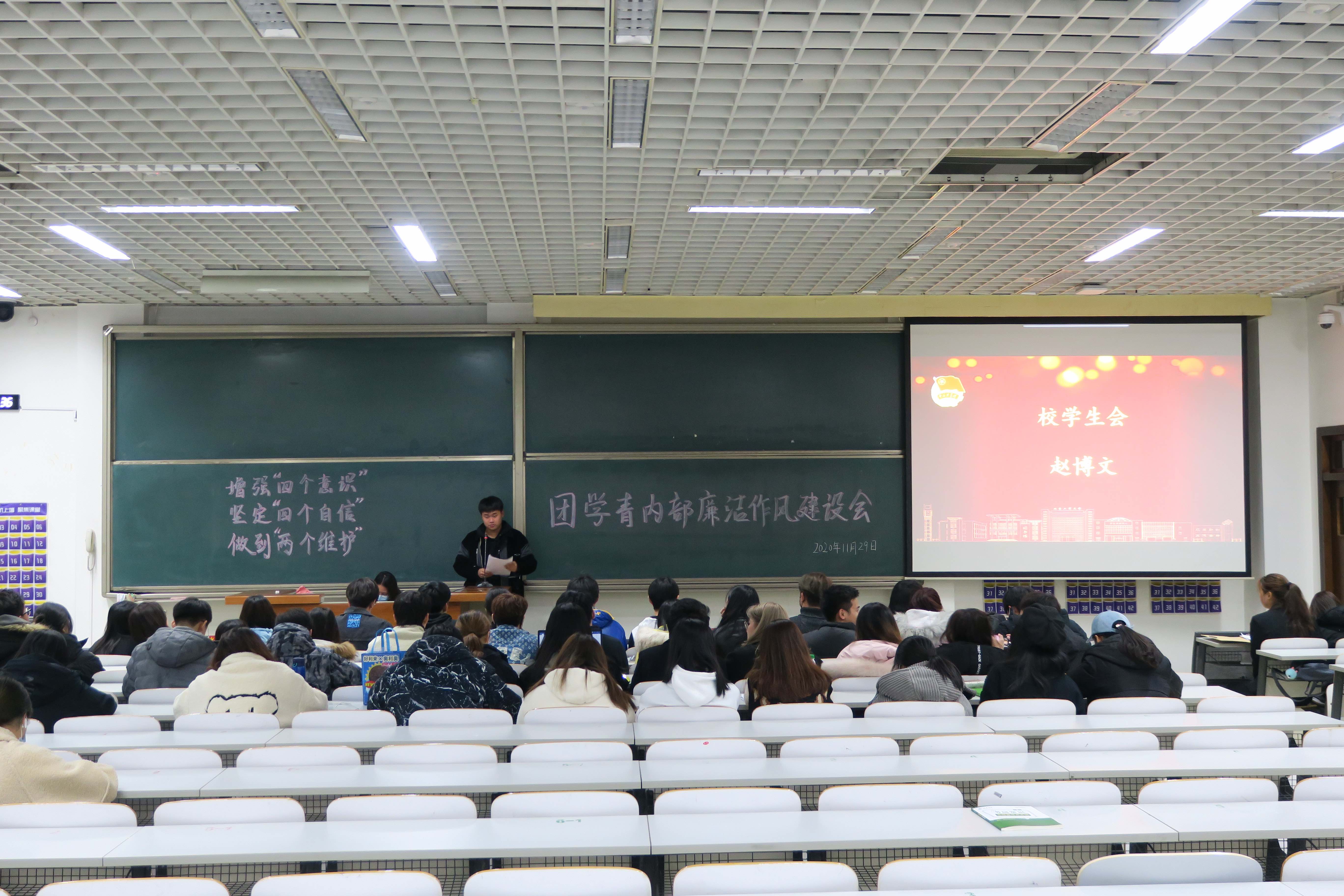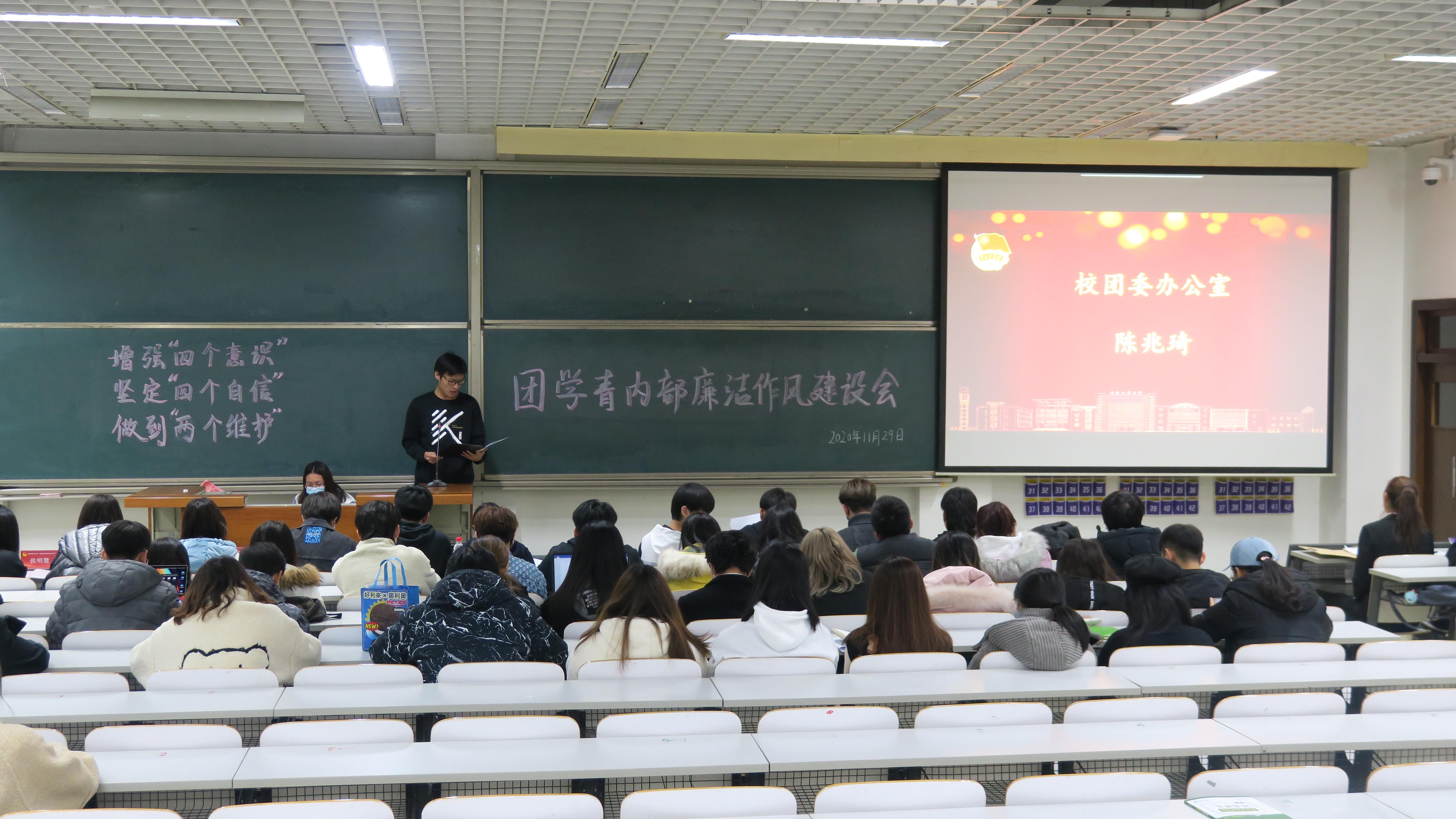 11月29日晚,我校團(tuán)委學(xué)生組織廉潔作風(fēng)建設(shè)會(huì)在良鄉(xiāng)校區(qū)舉行。校團(tuán)委老師、團(tuán)委學(xué)生各部門、學(xué)生會(huì)、青年志愿者協(xié)會(huì)主要學(xué)生干部共四十余名成員參加了本次會(huì)議。