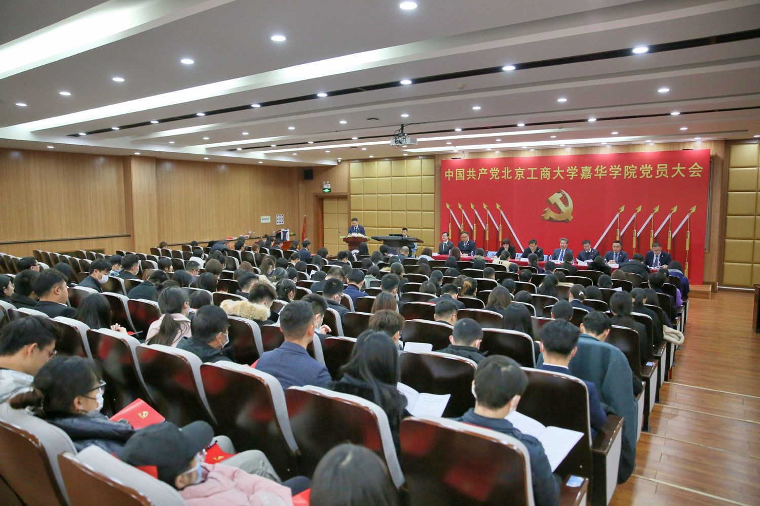 大會在莊嚴的國歌聲中拉開帷幕。武晶晶同志宣讀了學校黨委《關于同意中國共產黨北京工商大學嘉華學院召開黨員大會的批復》。