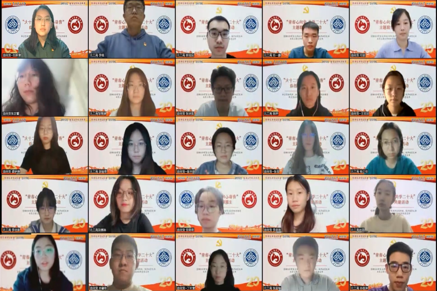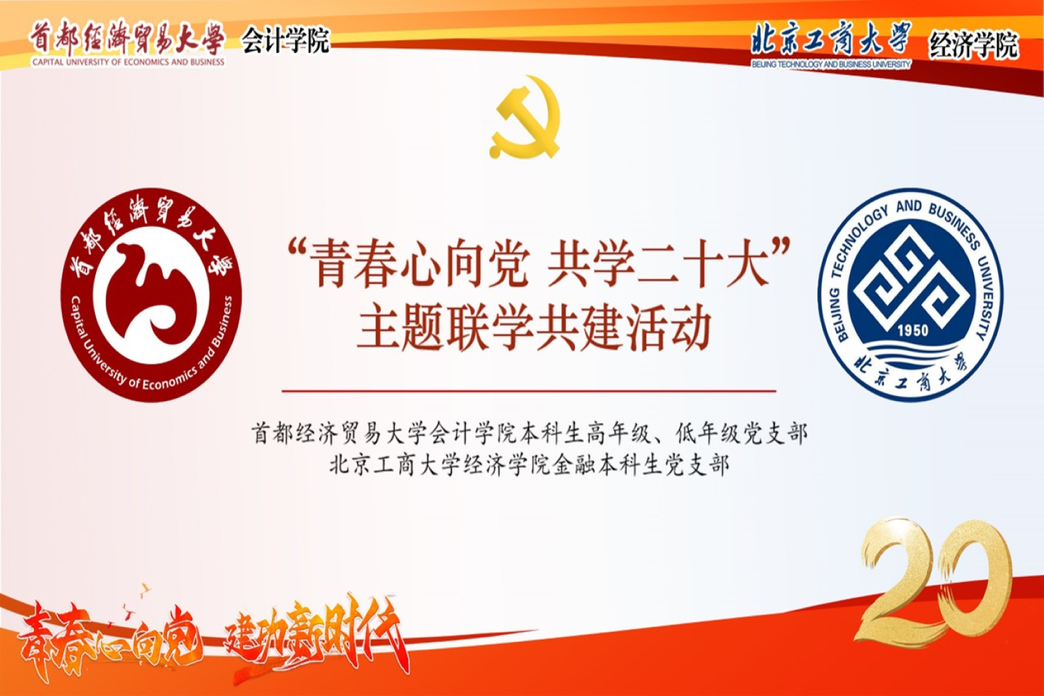 為深入學習貫徹習近平新時代中國特色社會主義思想,深化校際間黨支部的學習與交流,提升黨支部政治功能和組織力,我校經濟學院金融本科生黨支部同首都經濟貿易大學會計學院本科生高年級、低年級黨支部于11月24日開展“青春心向黨 共學二十大”主題聯學共建活動。