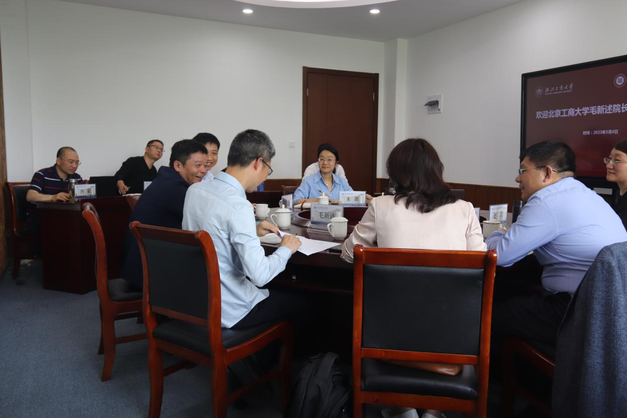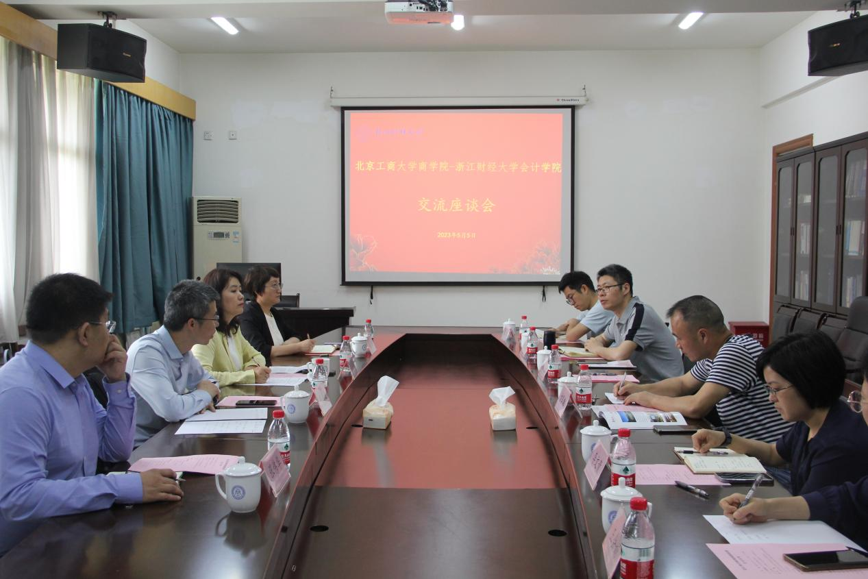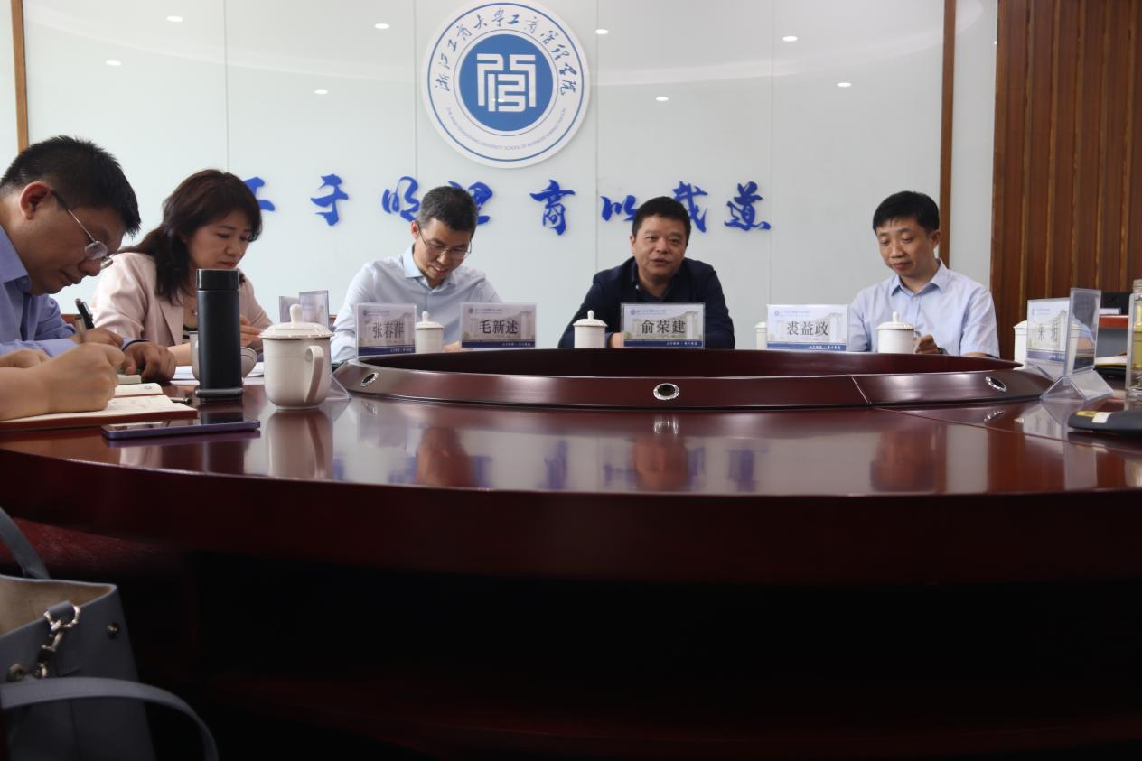 在浙江工商大學工商管理學院,黨委書記孫元、院長俞榮建、副院長朱玥、岑杰和會計學院黨委書記裘益政等參加了交流座談,詳細介紹了學院學科專業(yè)特色與博士點建設、黨建與業(yè)務深度融合的情況、數(shù)字化轉(zhuǎn)型的舉措以及人才引進情況、學院研究中心的設置與科研推進等情況,雙方就商科數(shù)字化轉(zhuǎn)型、師資隊伍建設、商科國際認證、專碩招生與研究生培養(yǎng)、校友工作的拓展等進行了深度交流。