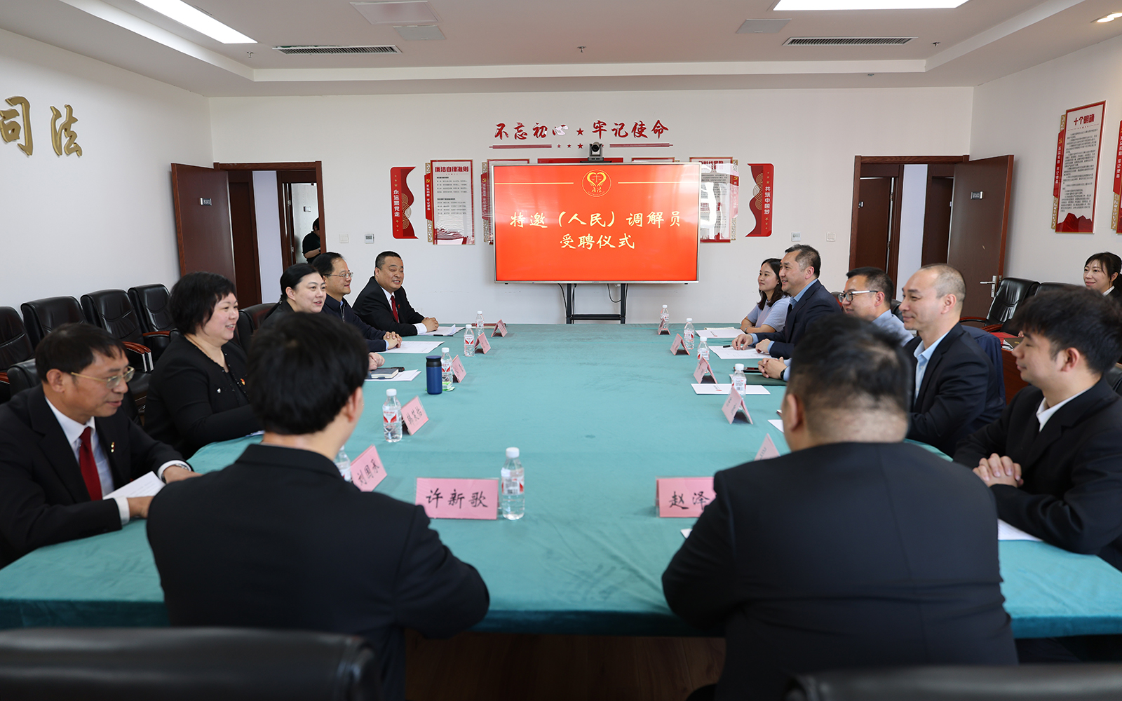 4月17日,首批“雙證”在校研究生特邀(人民)調解員受聘儀式在北京市房山區人民法院多元解紛訴調對接中心舉行。我院兩名研究生被聘為房山法院特邀調解員、房山區中和人民調解委員會人民調解員。房山法院黨組書記、院長齊瑩,黨組成員、副院長沈波,房山區司法局黨組成員、副局長韓笑怡,法學院黨委書記胥陽,院長陳敦,學校基層法治研究中心主任、房山法院掛職副院長張龍,就業專項輔導員劉心瑤出席受聘儀式。