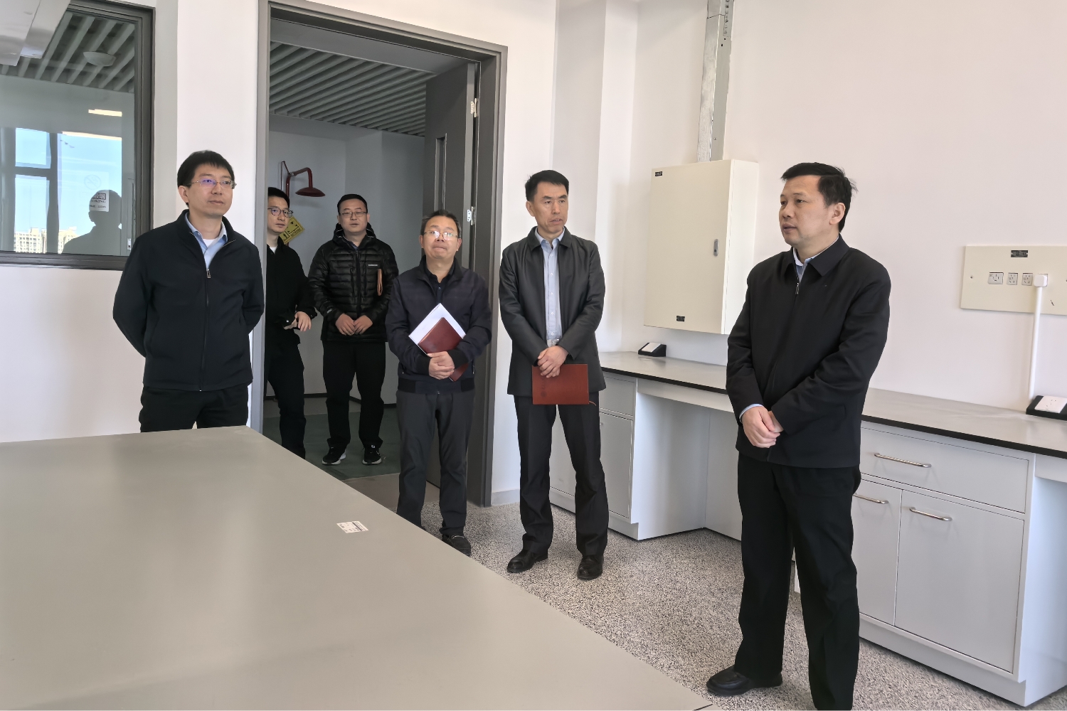 寇紅江一行實地考察了食品與健康學院、輕工科學與工程學院、大型儀器設備共享中心及輕工食品類基礎課實驗教學中心,認真聽取了各單位關于建設進展的情況匯報,詳細查看了實驗室、教室及辦公室的建設現狀,具體了解了實驗臺柜、通風設施等配套設施設備的安裝進度和技術標準。