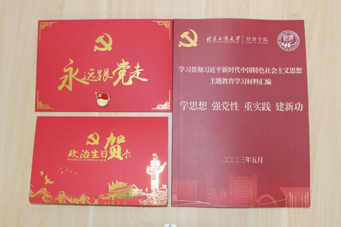 經(jīng)濟(jì)學(xué)院黨委副書記李艷春為新黨員代表授黨徽與政治生日賀卡。輔導(dǎo)員李錦為新黨員代表授主題教育學(xué)習(xí)讀本。