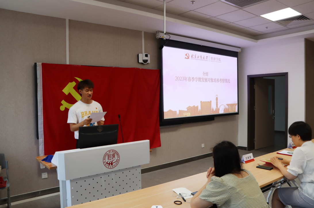 研究生黨建工作室負(fù)責(zé)人于偉鵬介紹2023春季學(xué)期發(fā)展對(duì)象培養(yǎng)考察情況。他總結(jié),2023年春季學(xué)期黨員發(fā)展牢牢遵循發(fā)展黨員工作控制總量、優(yōu)化結(jié)構(gòu)、提高質(zhì)量、發(fā)揮作用的總要求,啟用《北京工商大學(xué)經(jīng)濟(jì)學(xué)院學(xué)生入黨積極分子量化考評(píng)制度》,積極探索創(chuàng)新對(duì)積極分子考察識(shí)別的內(nèi)容、標(biāo)準(zhǔn)、路徑和方式方法。培養(yǎng)內(nèi)容緊密圍繞學(xué)習(xí)貫徹習(xí)近平新時(shí)代中國特色社會(huì)主義思想主題教育,開展富有成效的理論學(xué)習(xí)與外出實(shí)踐,共53名發(fā)展對(duì)象自身?xiàng)l件合格,入黨材料審閱合格,符合黨員標(biāo)準(zhǔn),由各支部接收為預(yù)備黨員。