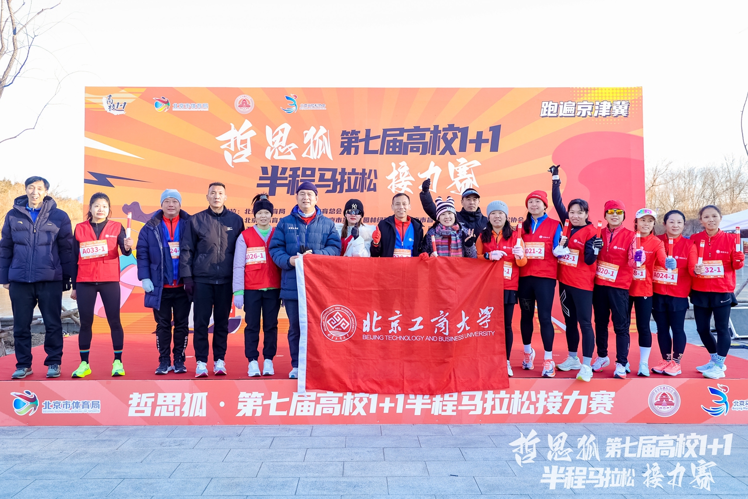 12月14日,2024“哲思狐”第七屆高校1+1半程馬拉松接力賽在昌平區白浮泉公園舉行。經過激烈的角逐,北京工商大學前六支隊伍以9小時03分整的總成績衛冕團體冠軍,天津大學、中國人民大學分獲第二、三名。商學院劉勇、企管研06級校友房廣霞組成的接力組合以1小時22分29秒的優異成績獲得接力賽隊伍小組第二名(高校組)。