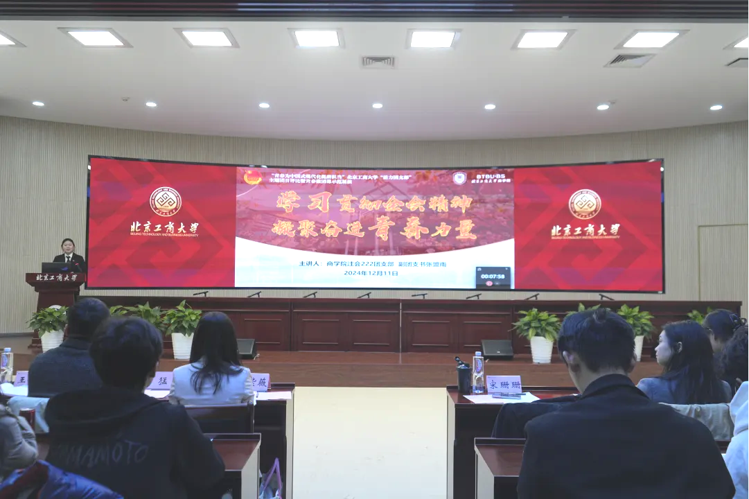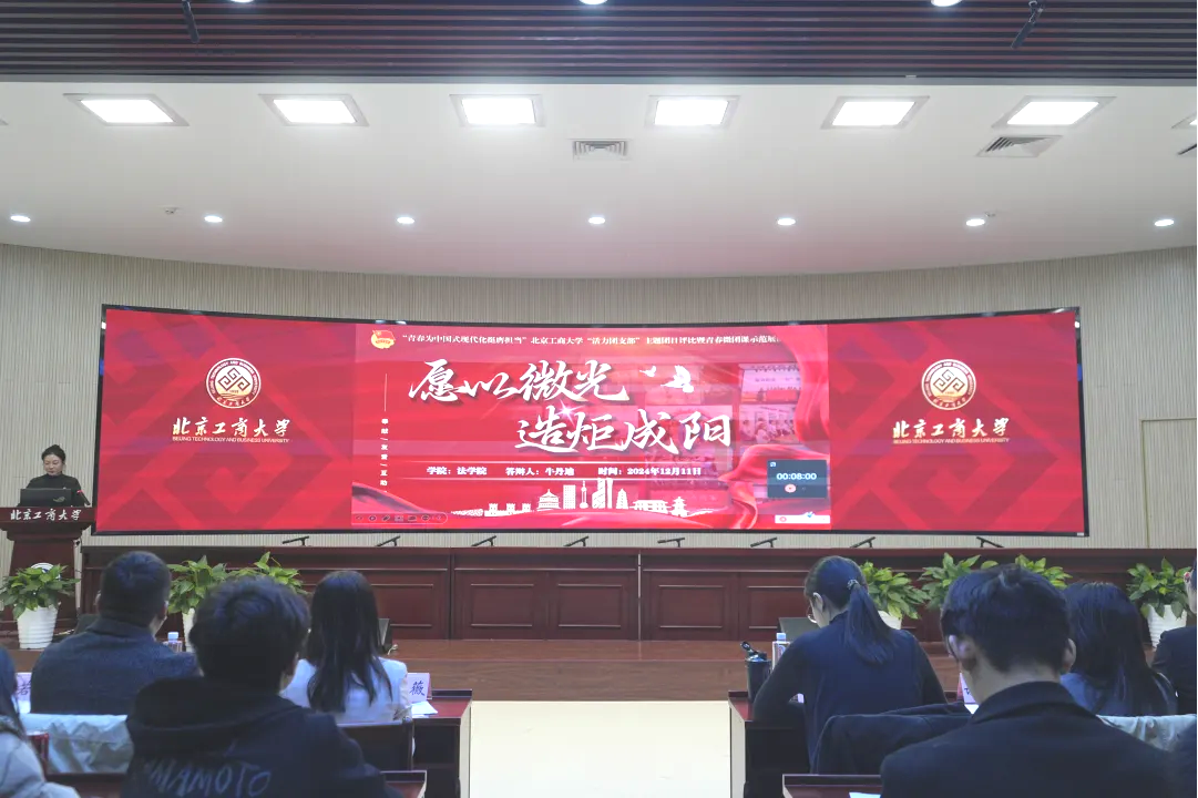 為學習宣傳貫徹黨的二十大和二十屆三中全會精神,深入貫徹落實習近平總書記關于青年工作的重要思想,著力提高黨的創新理論“青年化”闡釋能力。12月11日下午,“青春為中國式現代化挺膺擔當”北京工商大學“活力團支部”主題團日評比暨青春微團課示范展演在我校良鄉主校區舉辦。北京中醫藥大學團委書記宋珊珊、首都師范大學良鄉校區基礎學部黨總支副書記郭猛、中國社科院大學團委副書記謝麗泉、我校團委書記單紫薇、副書記王若冰、團委干部、各學院團委書記、基層團支部代表、星火團校全體學員參加活動。