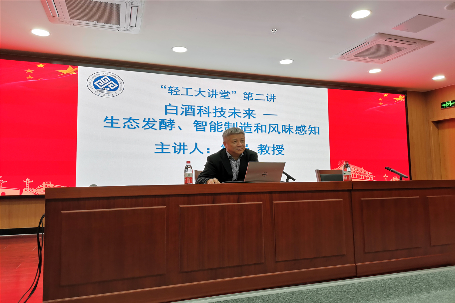 4月29日,輕工科學技術學院舉辦“輕工大講堂”系列講座第二講,邀請江南大學副校長、著名白酒釀造專家、博士生導師徐巖教授進行學術講座。學院黨委書記鄭福平教授、釀酒工程系主任黃明泉教授、相關專業教師及本科生和研究生一百余人聆聽了本次報告,鄭福平教授主持講座。