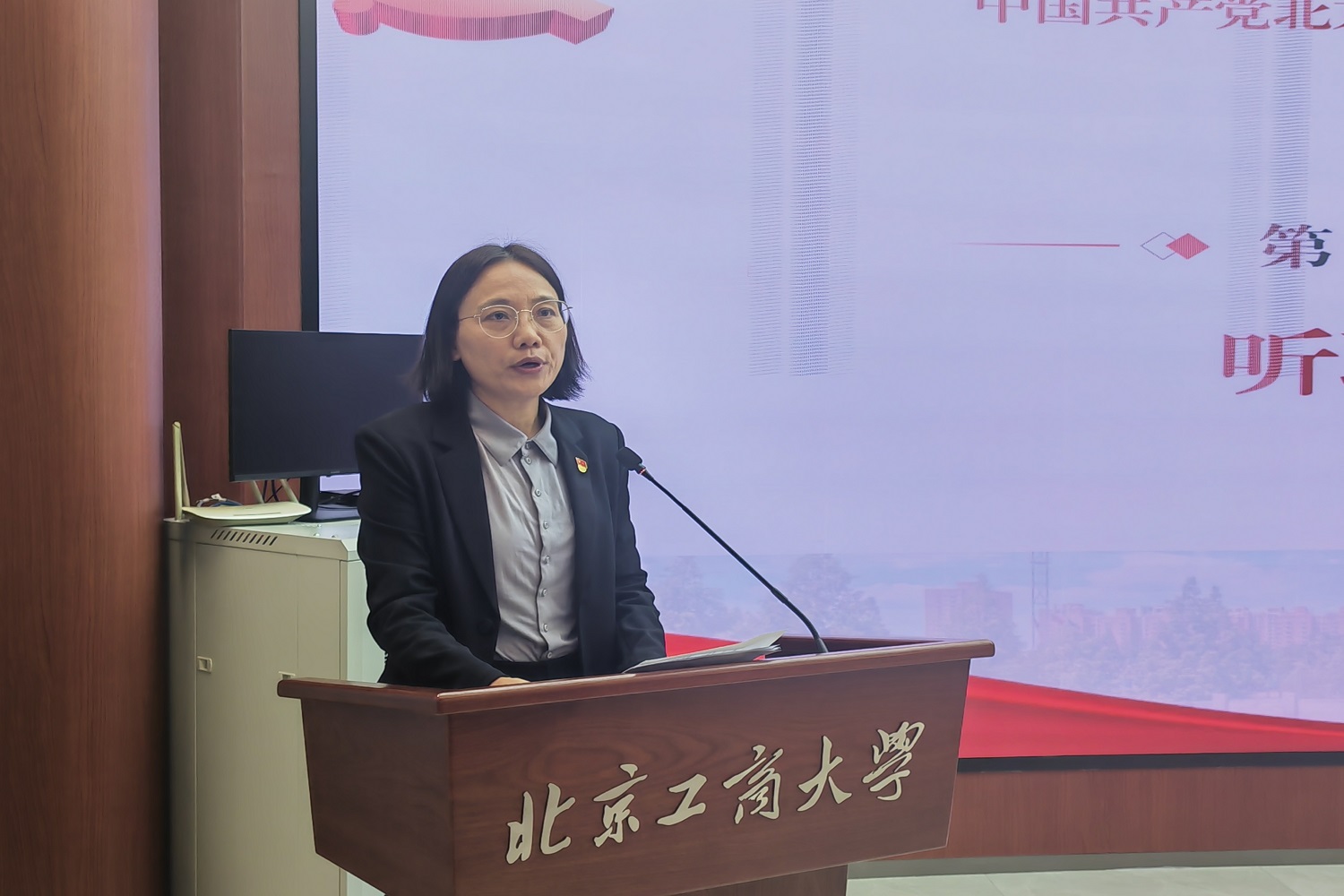 大會在雄壯的國歌聲中正式拉開帷幕。劉玢宣讀學校黨委《關于同意中國共產黨北京工商大學體育教學部委員會召開黨員大會的批復》。